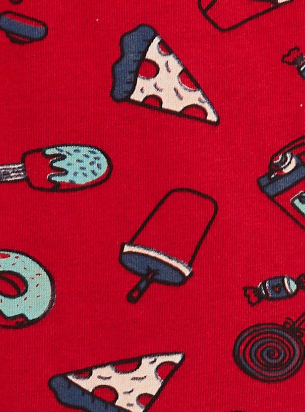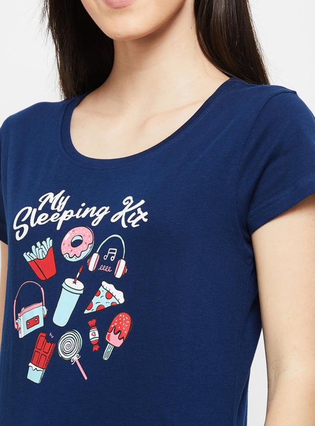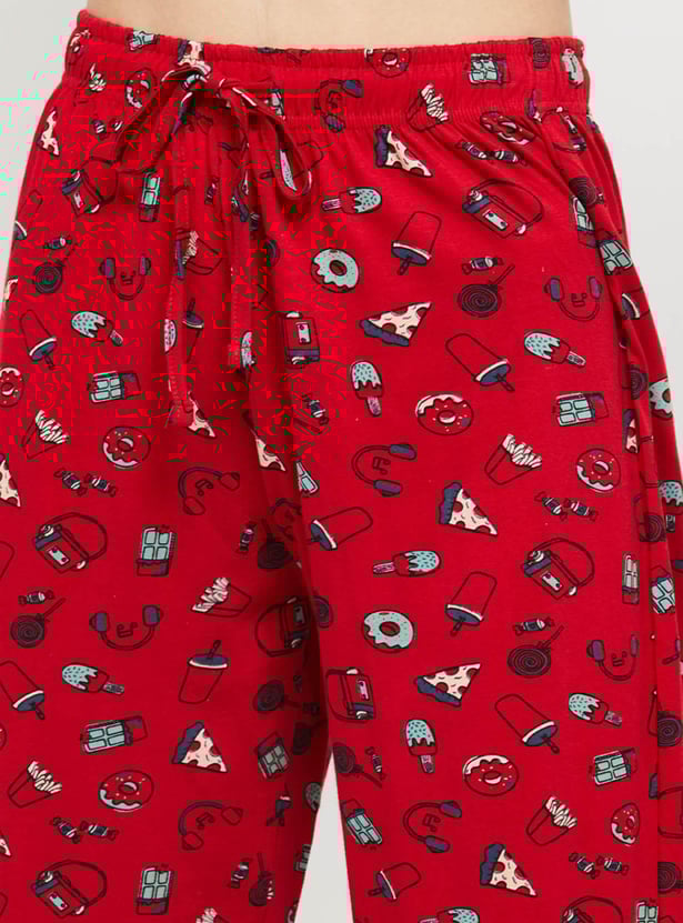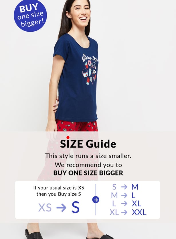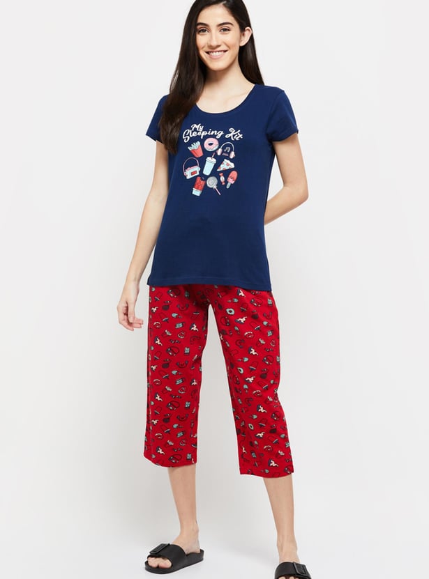 Give your loungewear a comfy look with this set that comes with a printed tee designed with a round neck & short sleeves and a pair of elasticated capri pant.