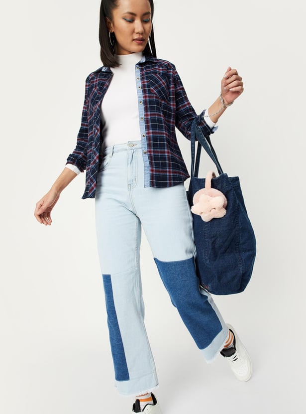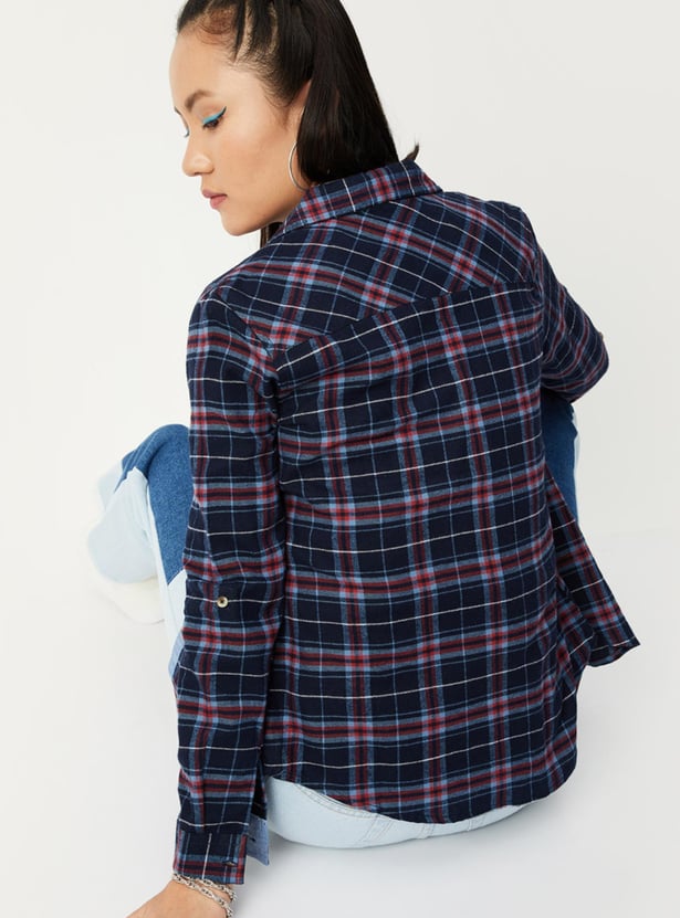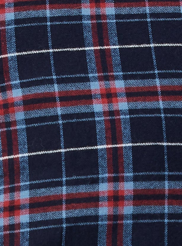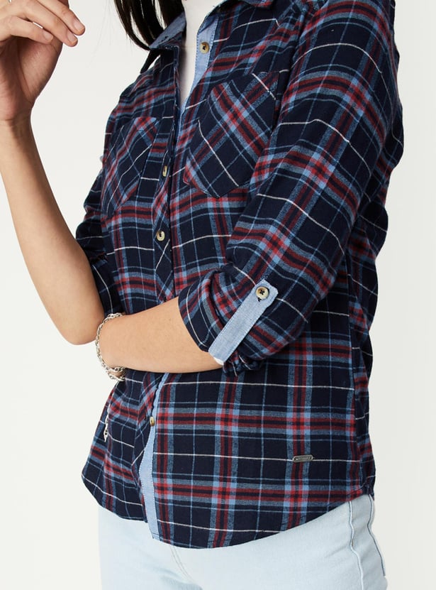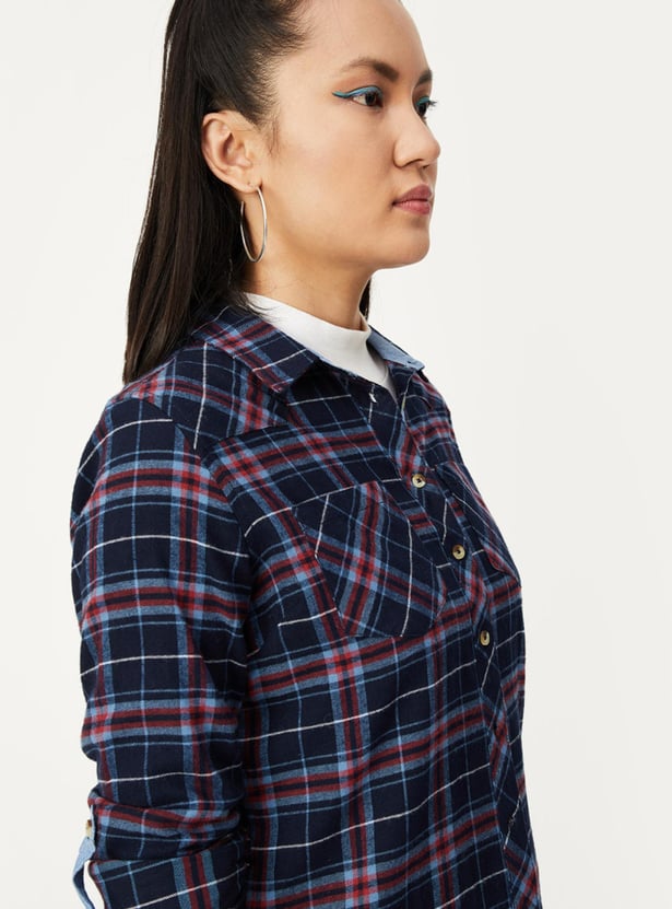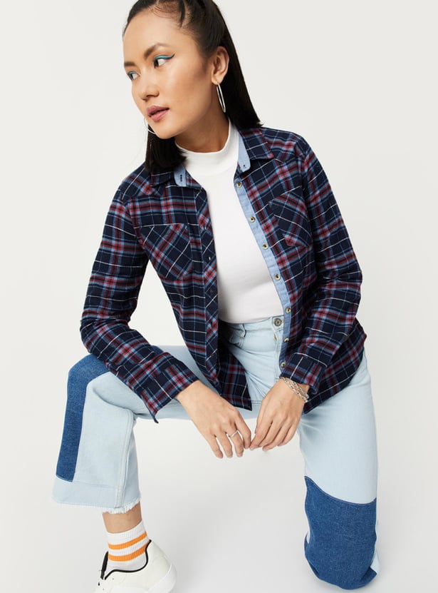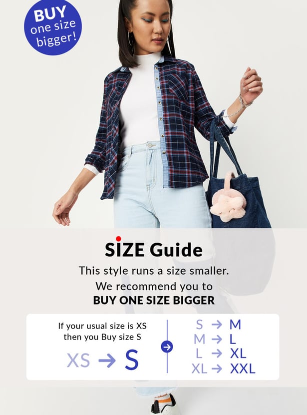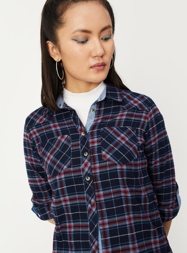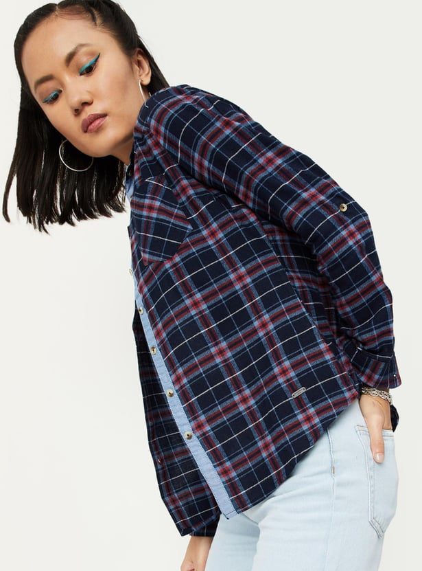 One piece, myriad styling, this plaid checked shirt is a must-have in your wardrobe. It is tailored with a spread collar, roll-up sleeves, patch pockets at the chest, a curved hem, and a checked pattern. For a street-ready look, layer this shirt over a high-neck tee and team it up with jeans and sneakers.