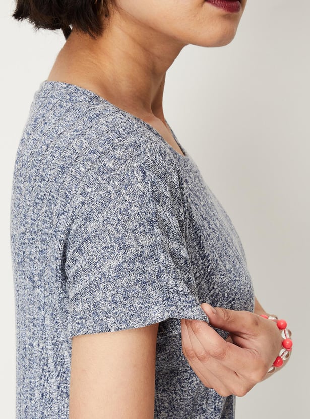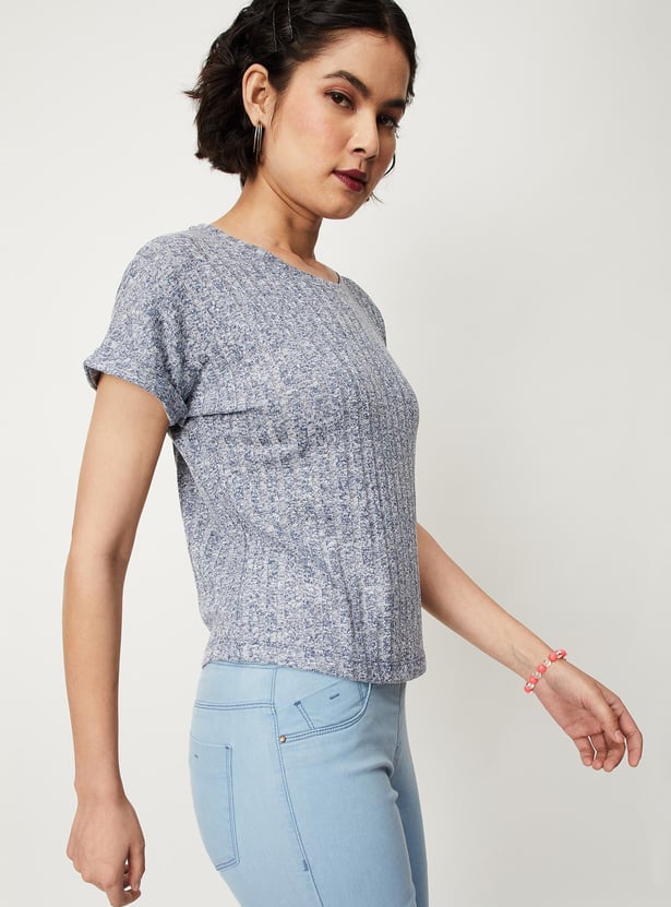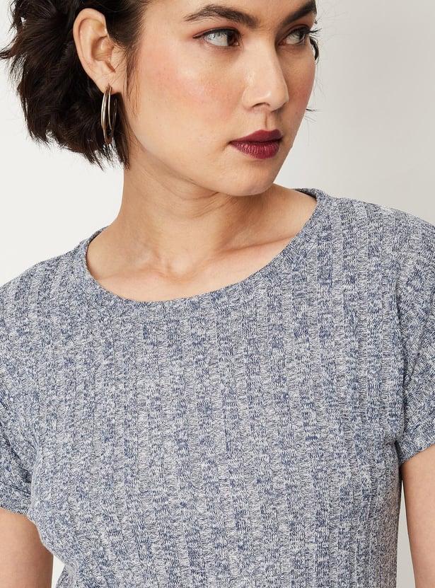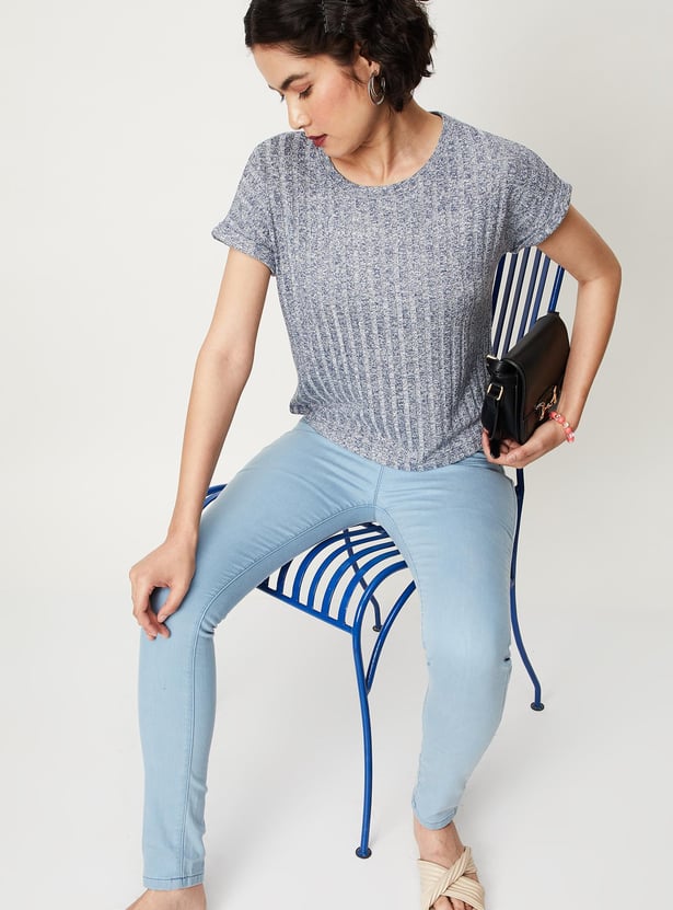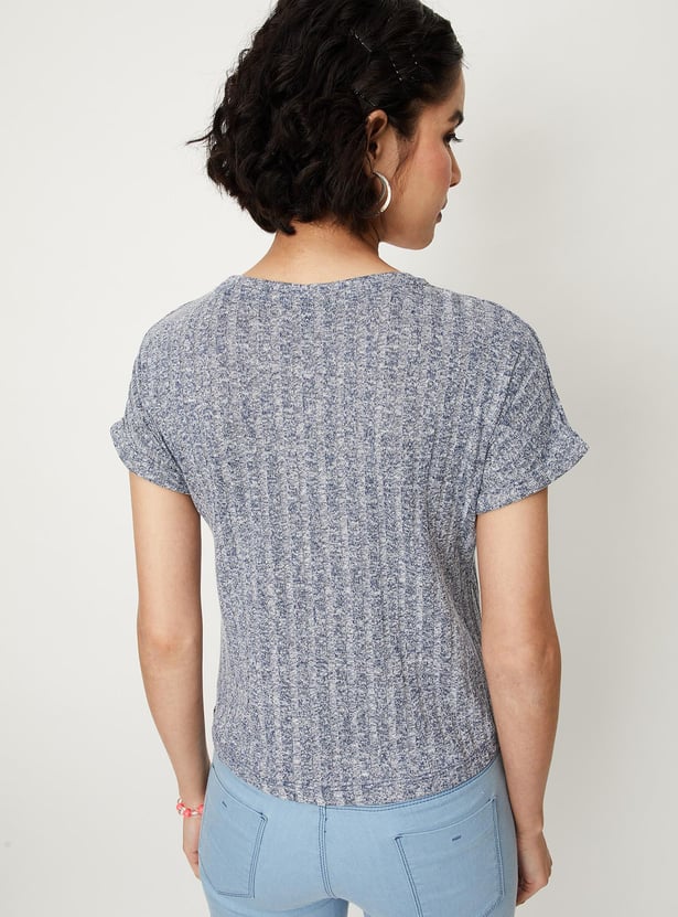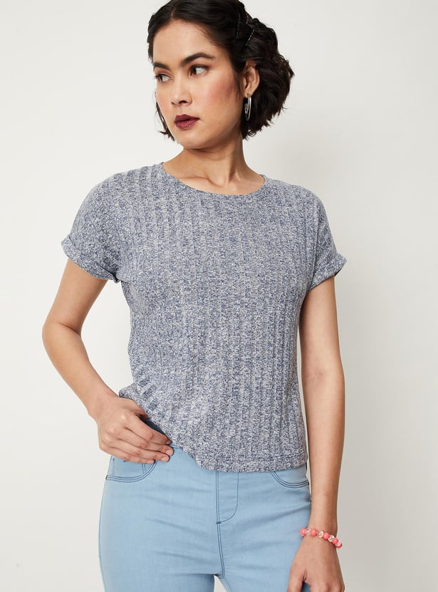 Let your style speak for yourself with this t-shirt. It comes with a textured surface, half sleeves, and a round neckline. Team it up with a skirt and heels to complete the look.
