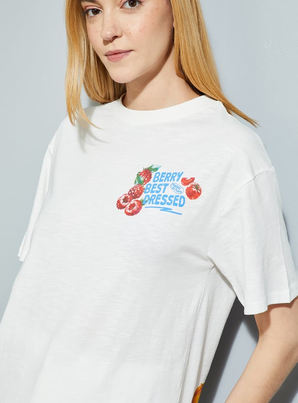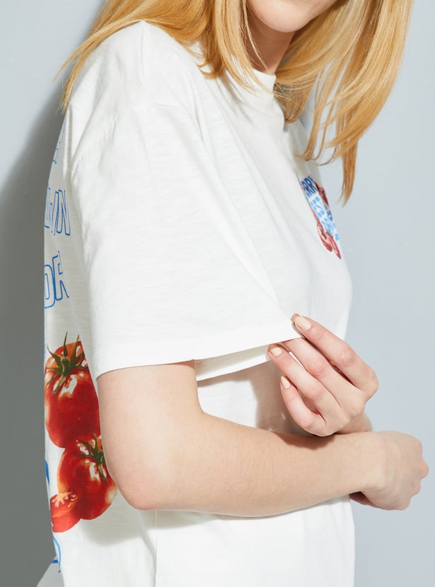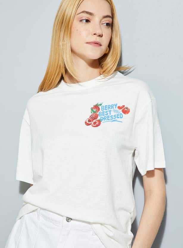 This back print t-shirt showcases a bold graphic on the back, with a classic round neck and half sleeves for a comfortable, casual fit.