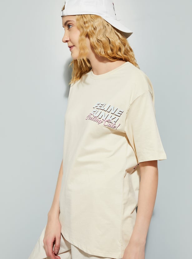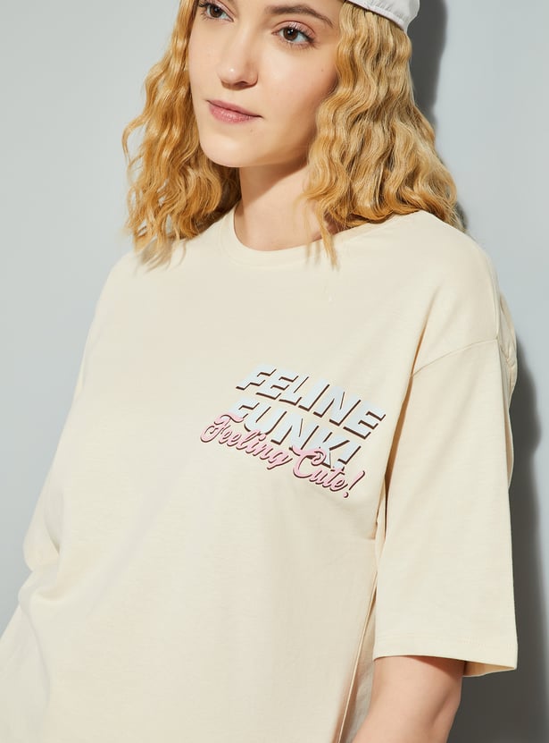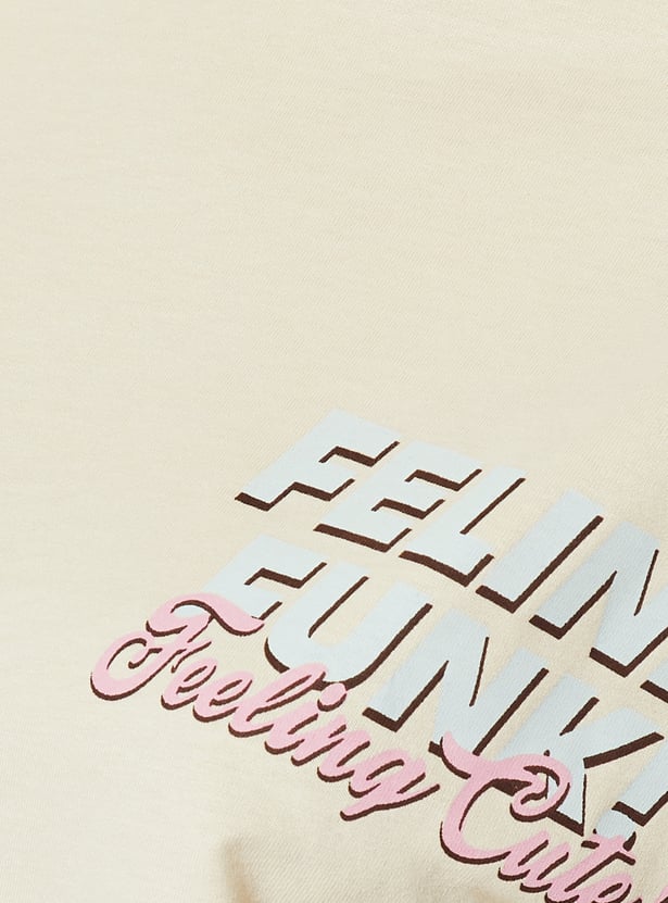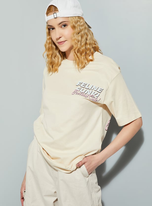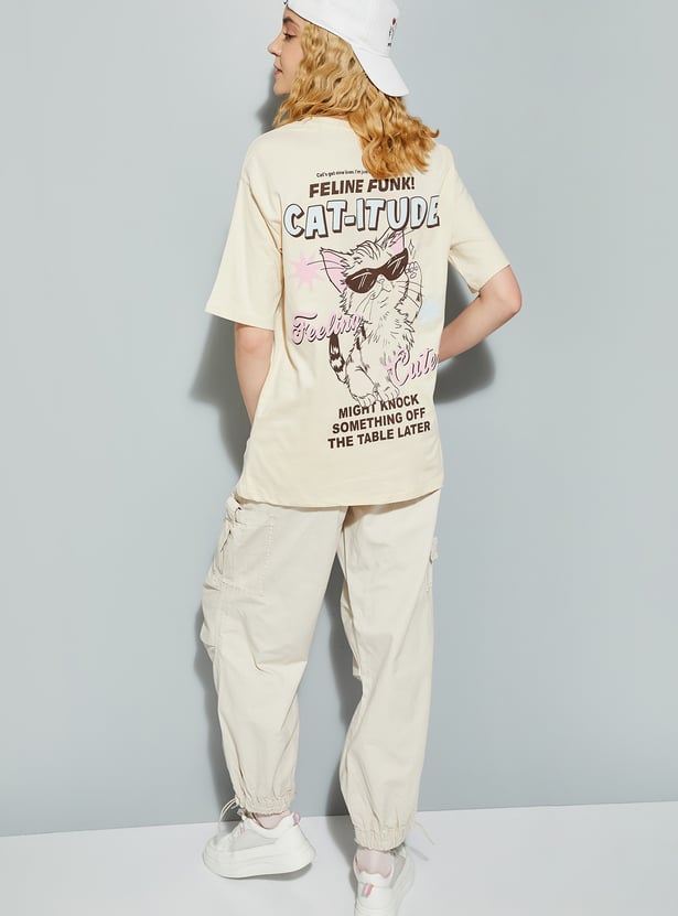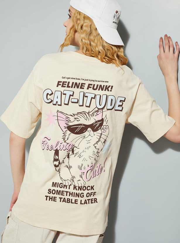 Show off your "catitude" with this T-shirt. Featuring a fun and fierce cat graphic on the back, this tee adds a playful touch to your look. With a round neck and half sleeves, it offers a comfortable look.