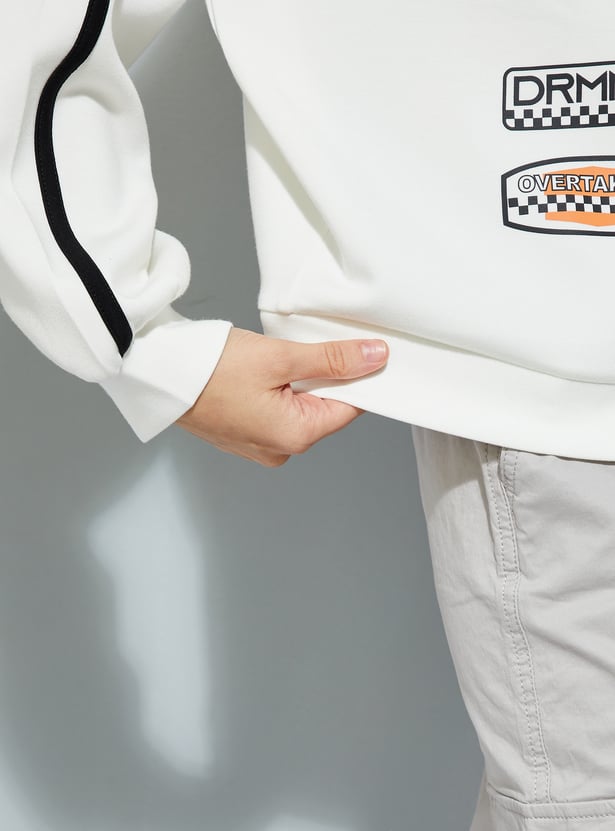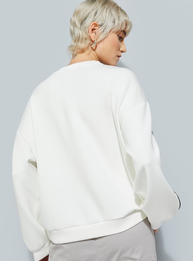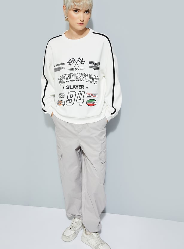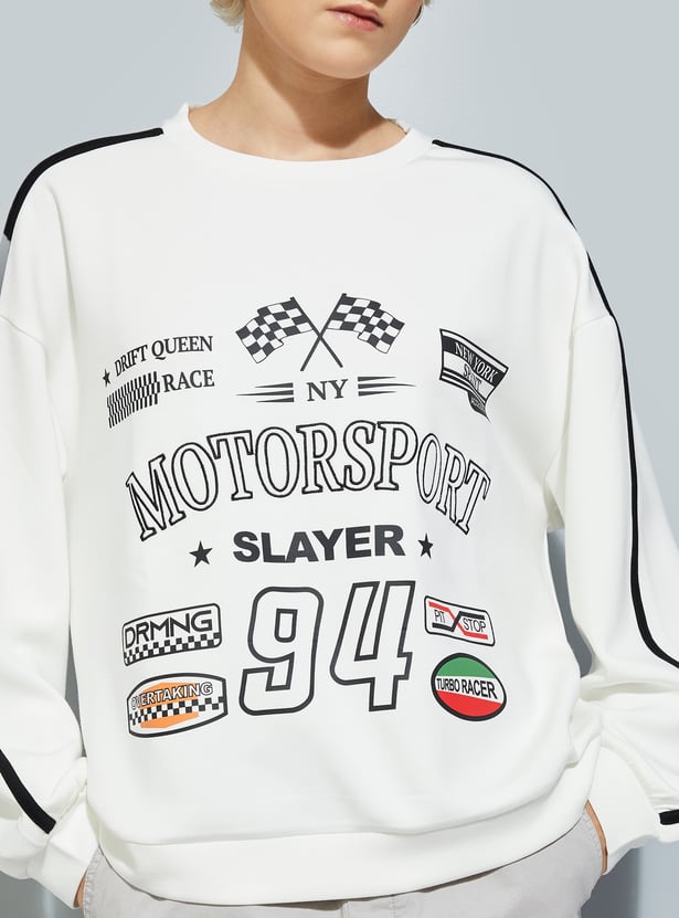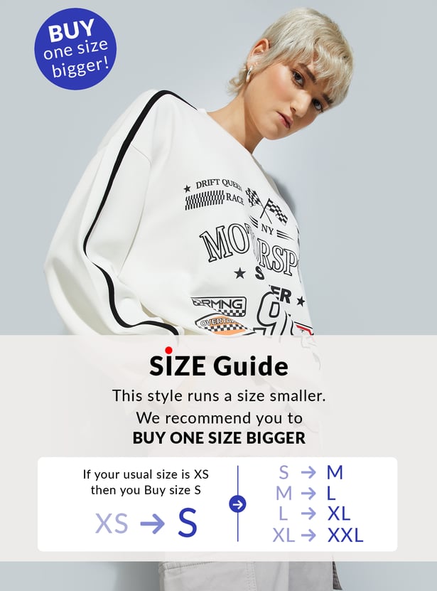 Stay cozy and on-trend with this printed oversized sweatshirt, featuring a classic crew neck, full sleeves, and a ribbed hem for a snug finish.