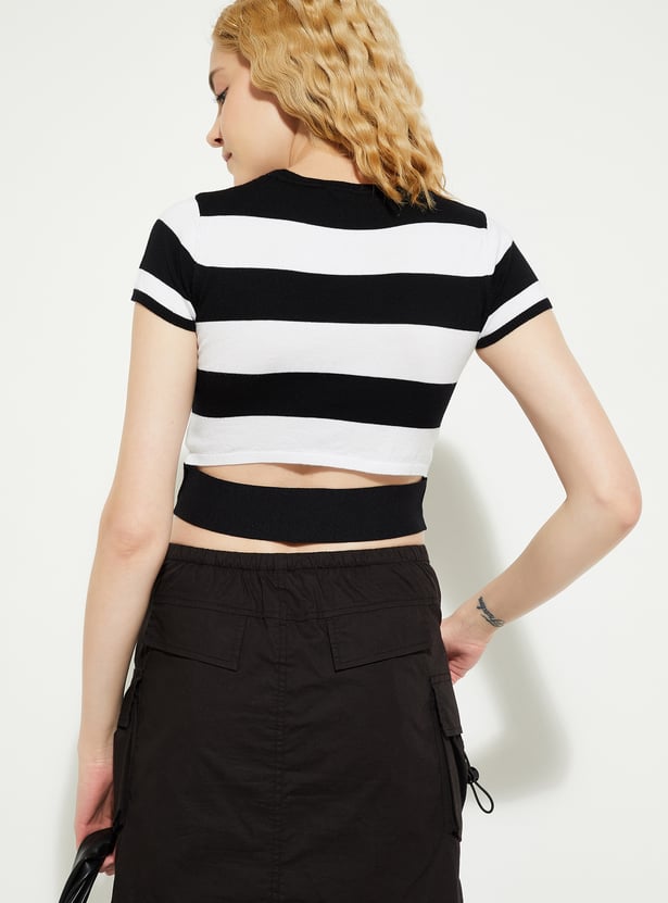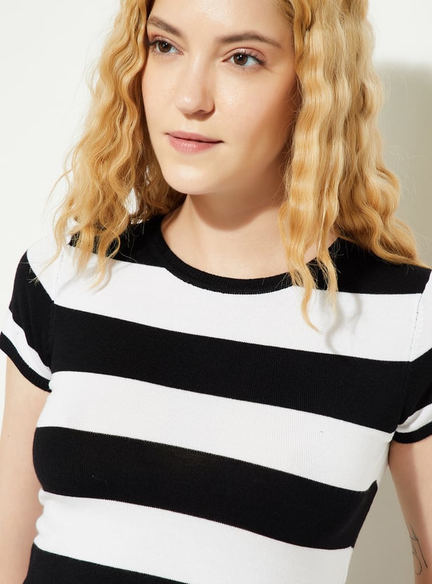 ALAYA F x URB_N Women Striped Knit Crop T-shirt