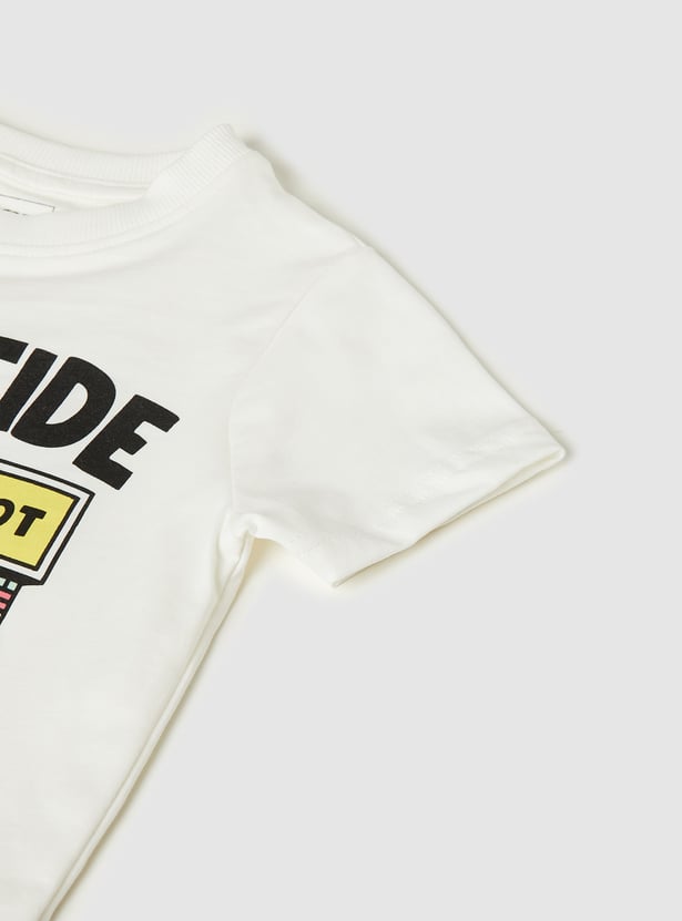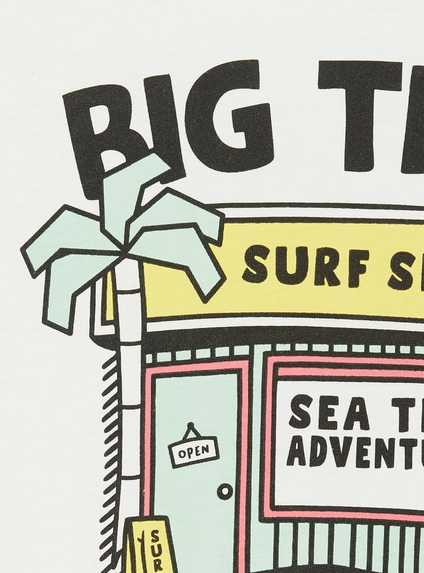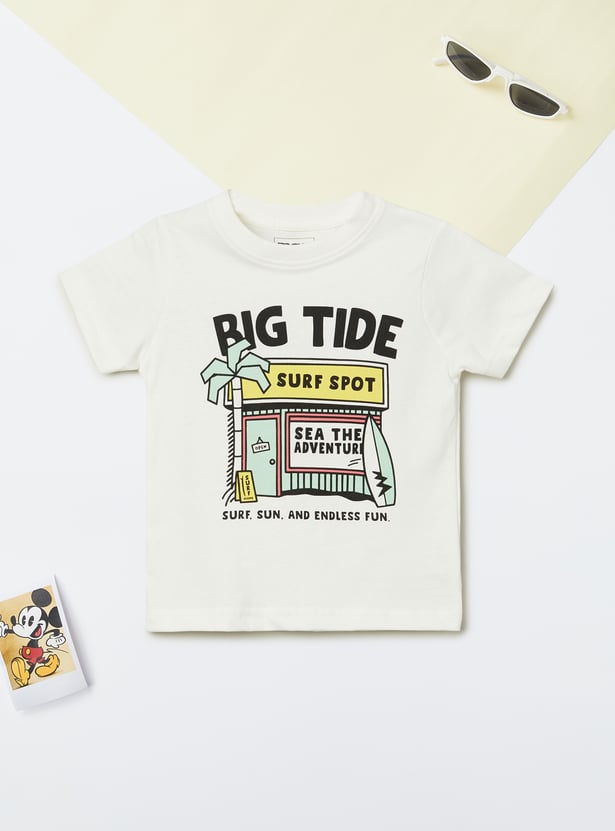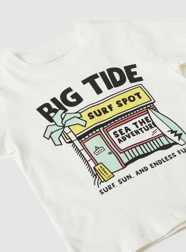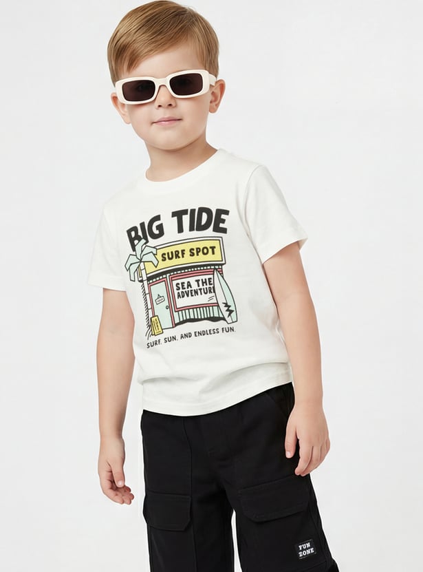 Brighten up your kid’s wardrobe with this graphic printed T-shirt, featuring a classic crew neckline and half sleeves for everyday comfort and casual style.