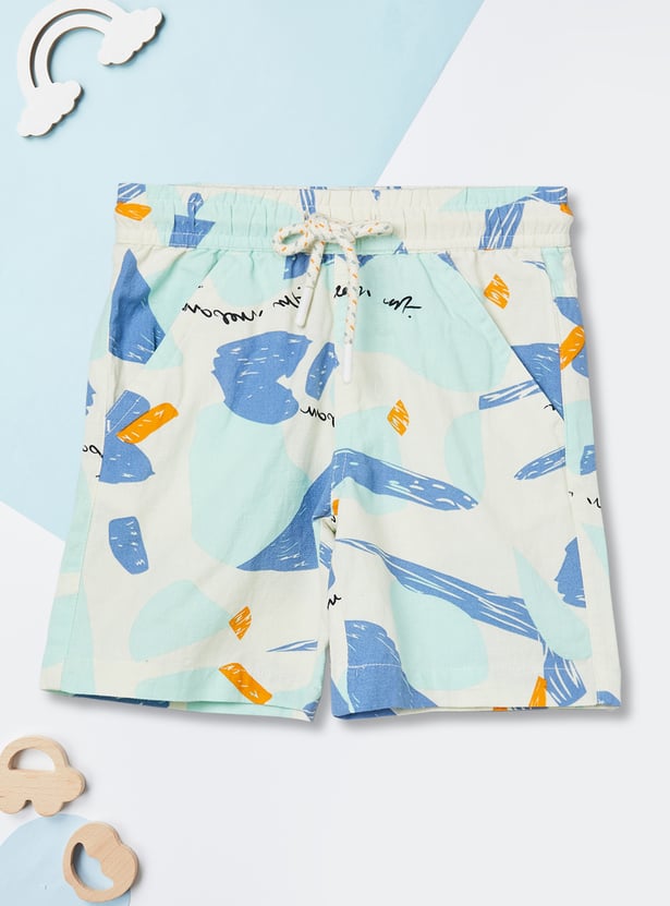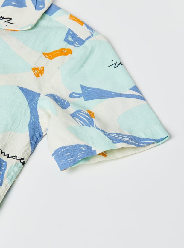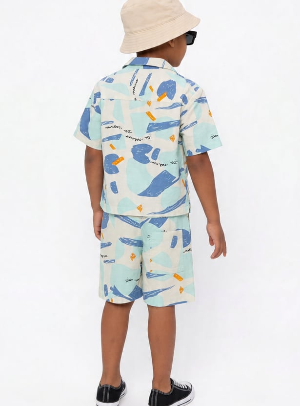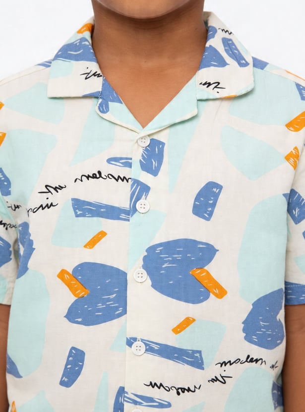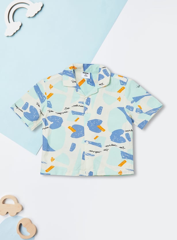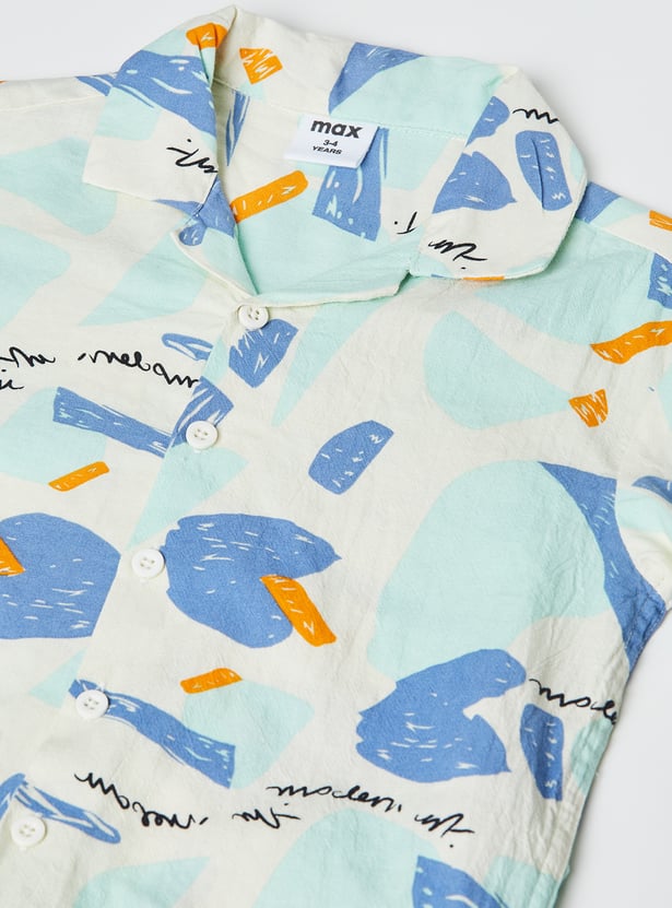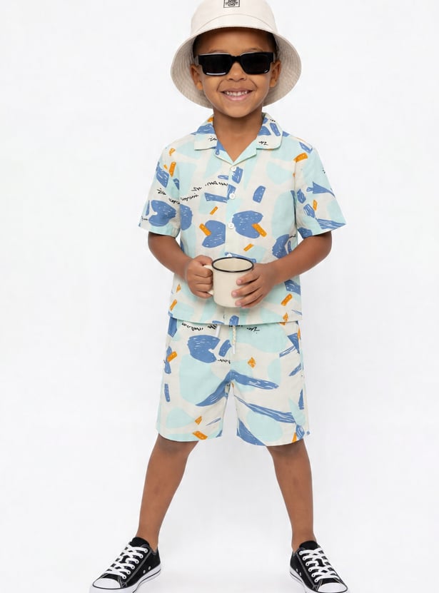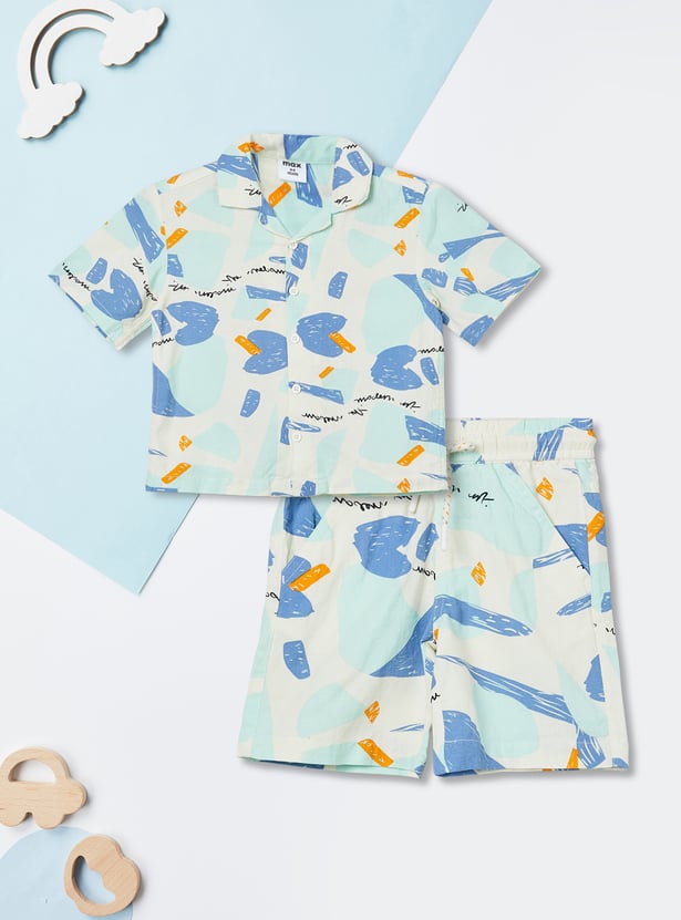 Stay casual with the printed shorts set. The shirt has a resort collar. A button closure adds detail while half sleeves keep it airy. The shorts feature a drawstring closure and pockets add convenience. A relaxed outfit for warm days.