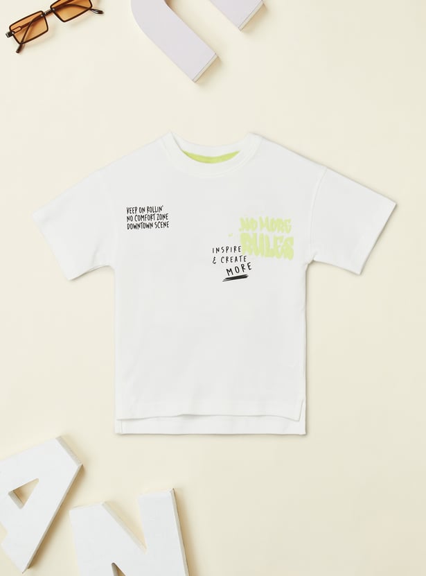 This printed T-shirt is the perfect addition to your casual wardrobe. Featuring a crew neck and half sleeves, it combines comfort and style with a unique print that makes a statement.