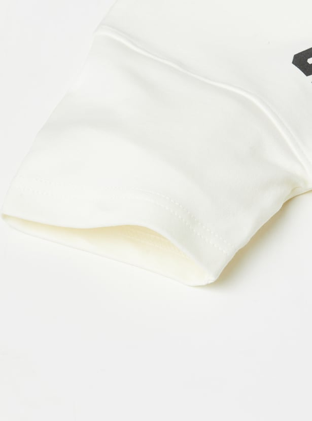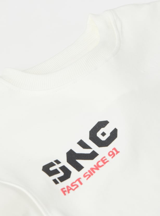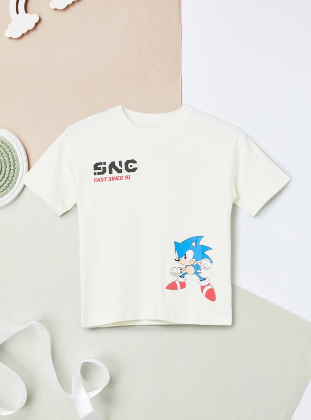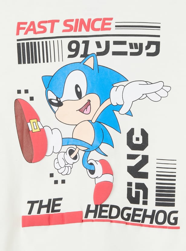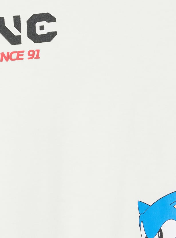 This Sonic print T-shirt features a cool front and back graphic, a classic crew neck, and comfy half sleeves—perfect for everyday wear with a fun, energetic twist.