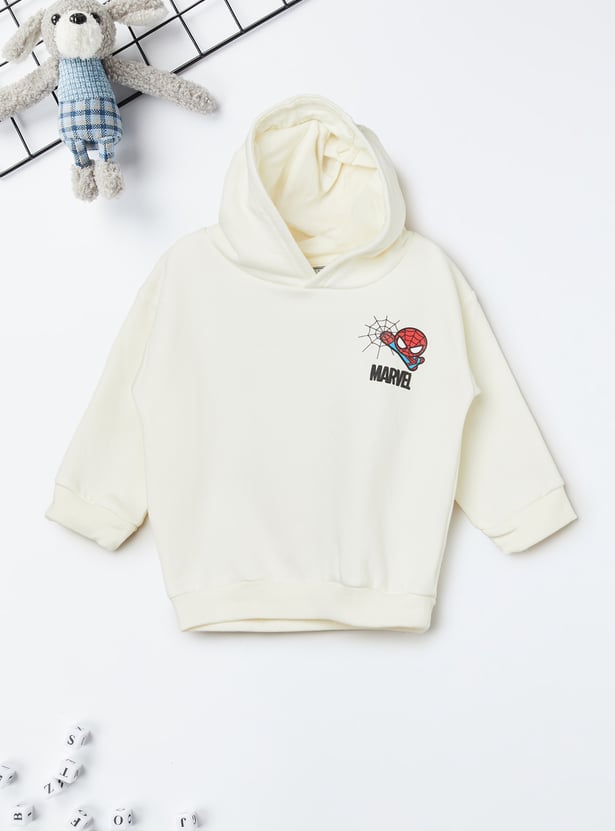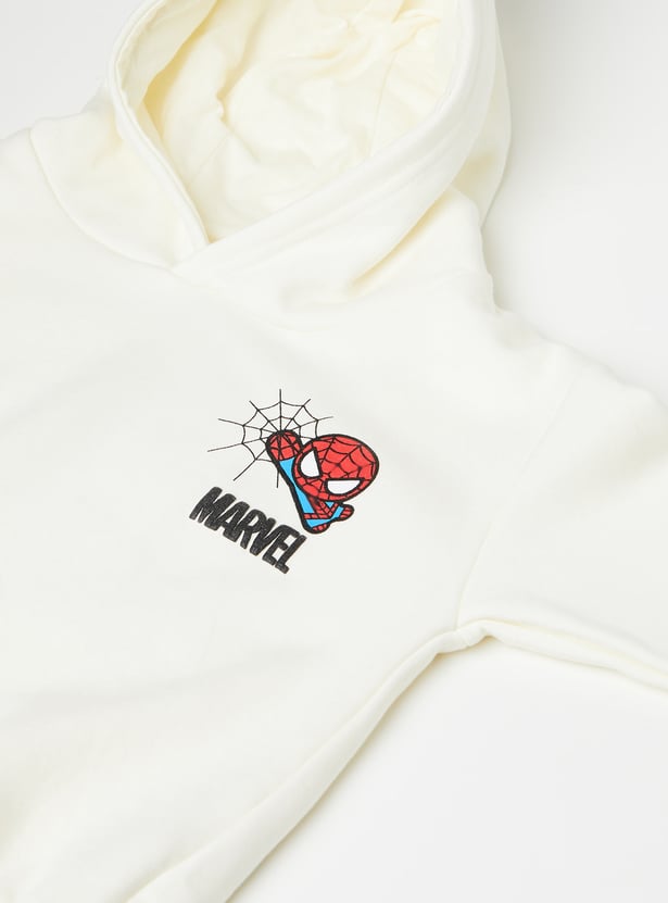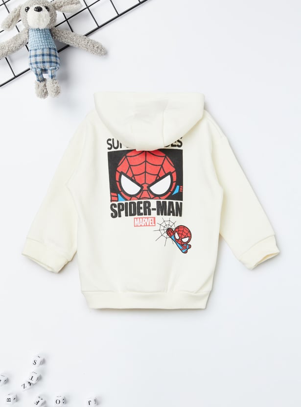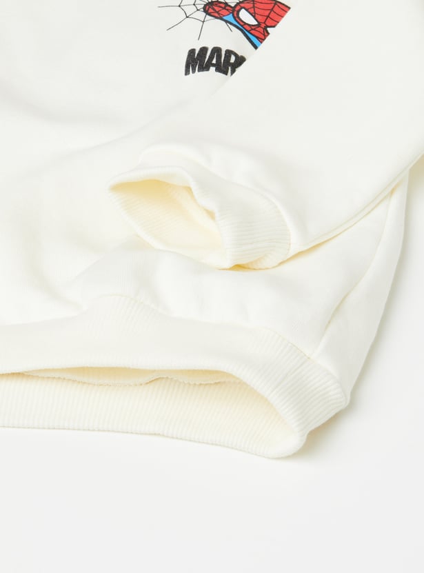 Bring superhero energy to your casual look with this Spider-Man print sweatshirt, featuring a hooded neck and full sleeves for a cozy, laid-back vibe.