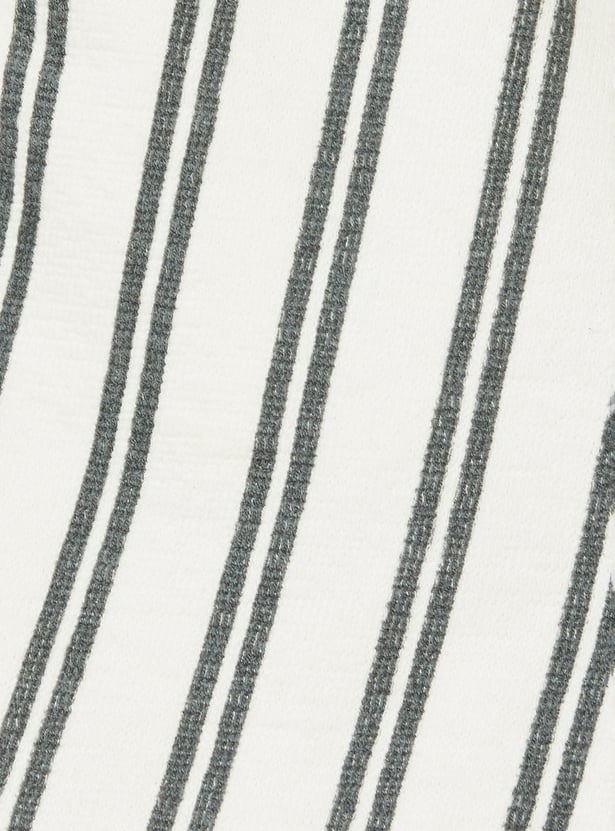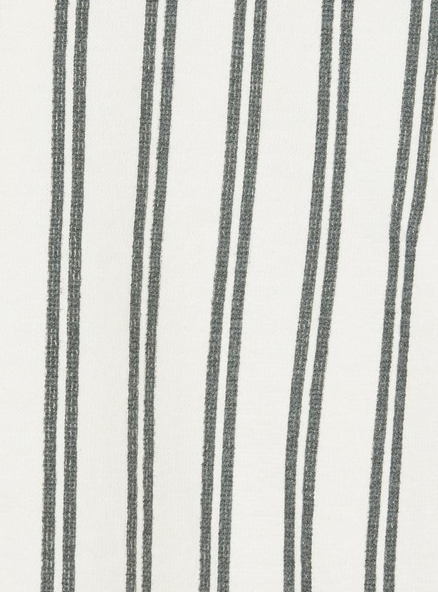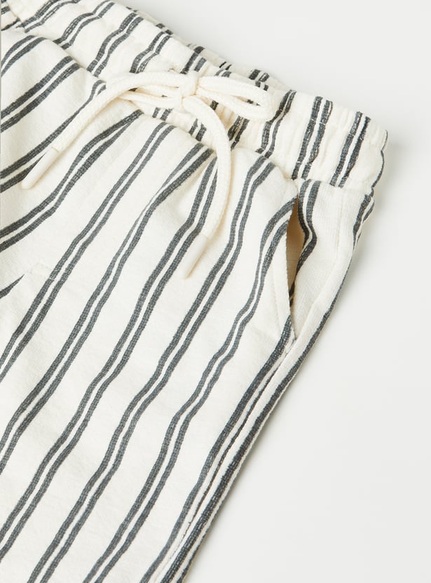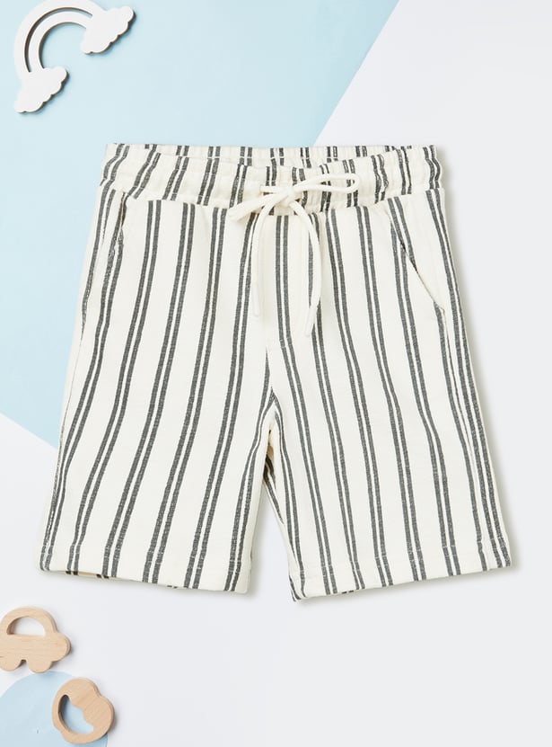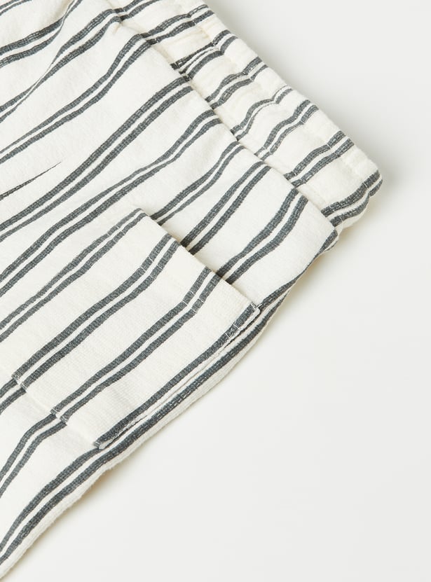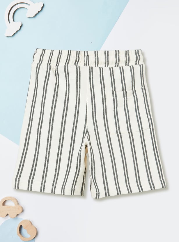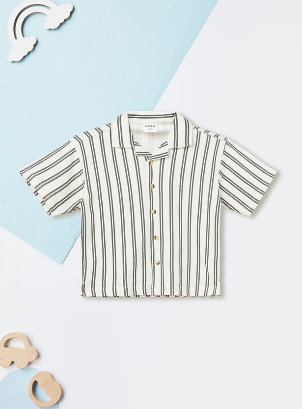 Spruce up your little one's casual wardrobe with the addition of this striped shirt that features a resort collar and half sleeves. It is complemented by a pair of striped elasticated shorts.