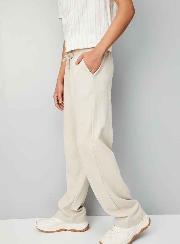 Stay effortlessly stylish with these textured track pants, designed for both comfort and function. Featuring a mid-rise waist, drawstring closure, and convenient pockets, they bring a modern twist to everyday athleisure.