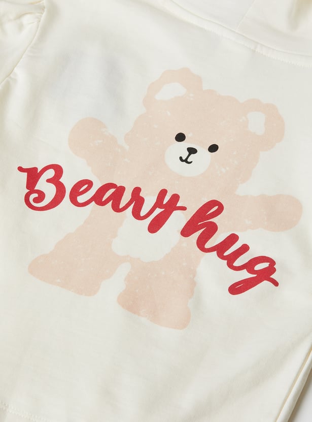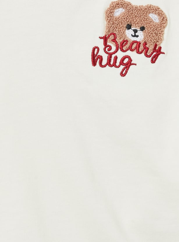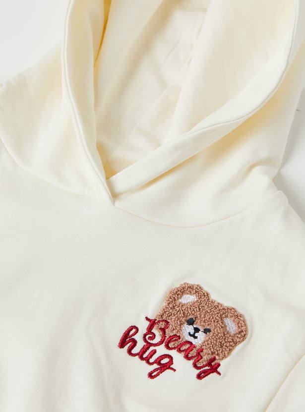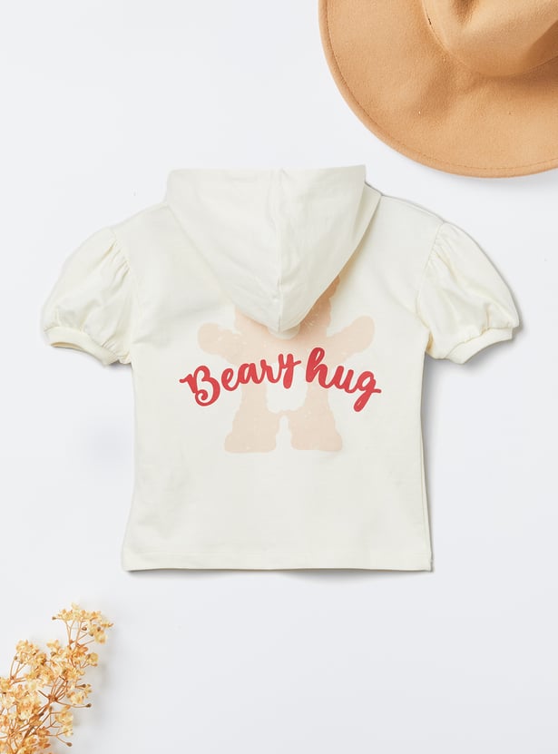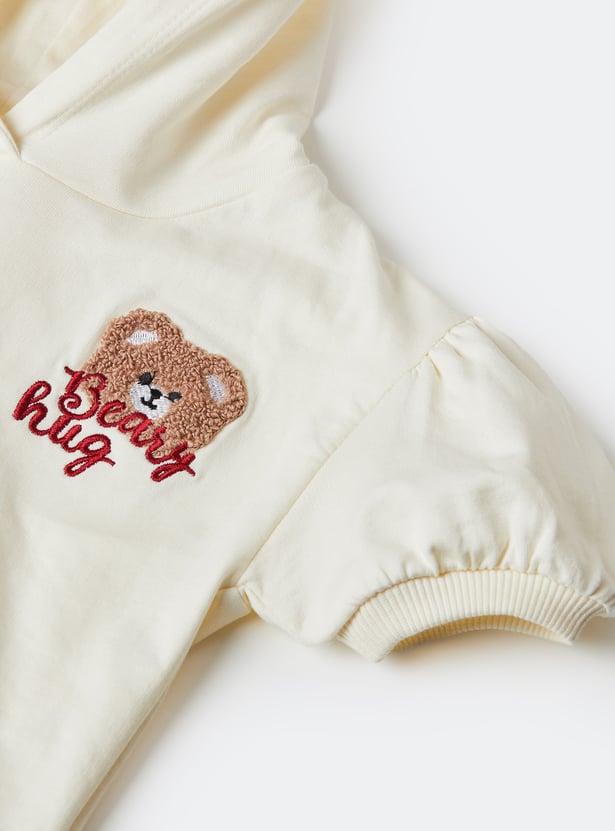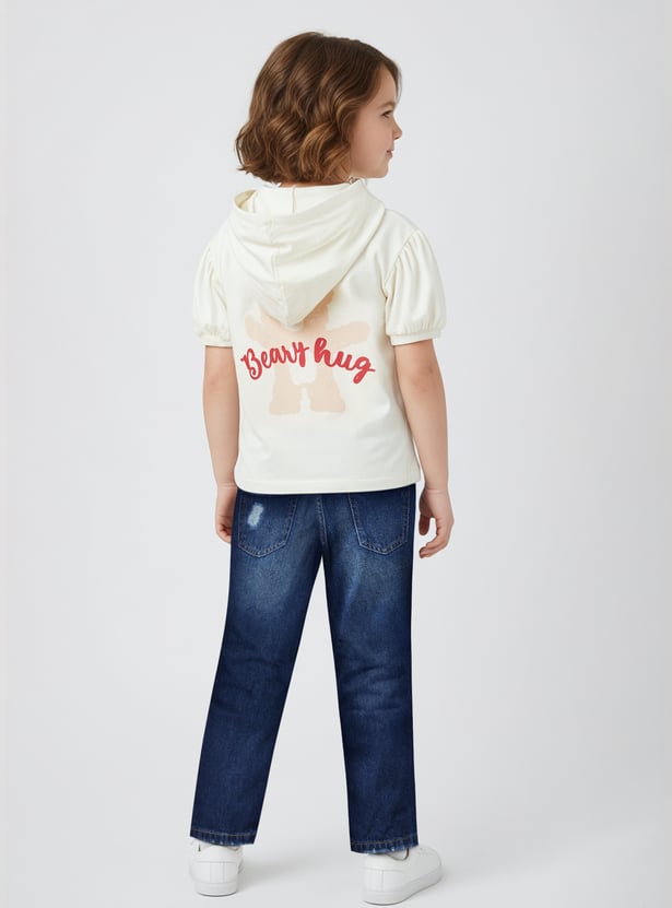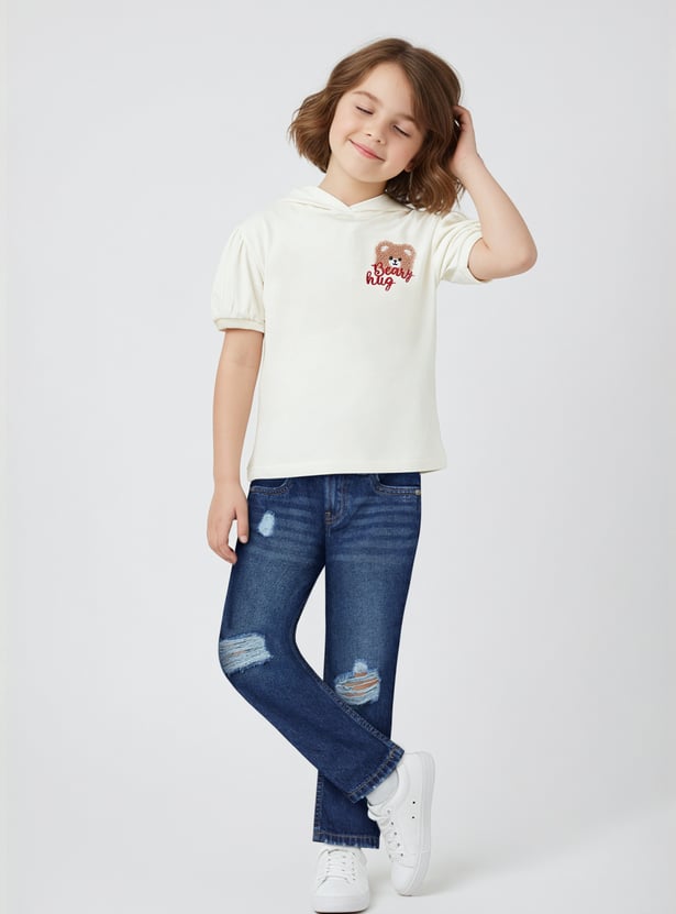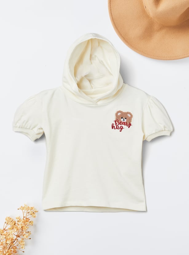 Bold and playful—this back print hooded t-shirt, detailed with embroidery, is a standout! With its trendy hooded neckline and comfortable half-sleeves, this tee effortlessly combines style and comfort.