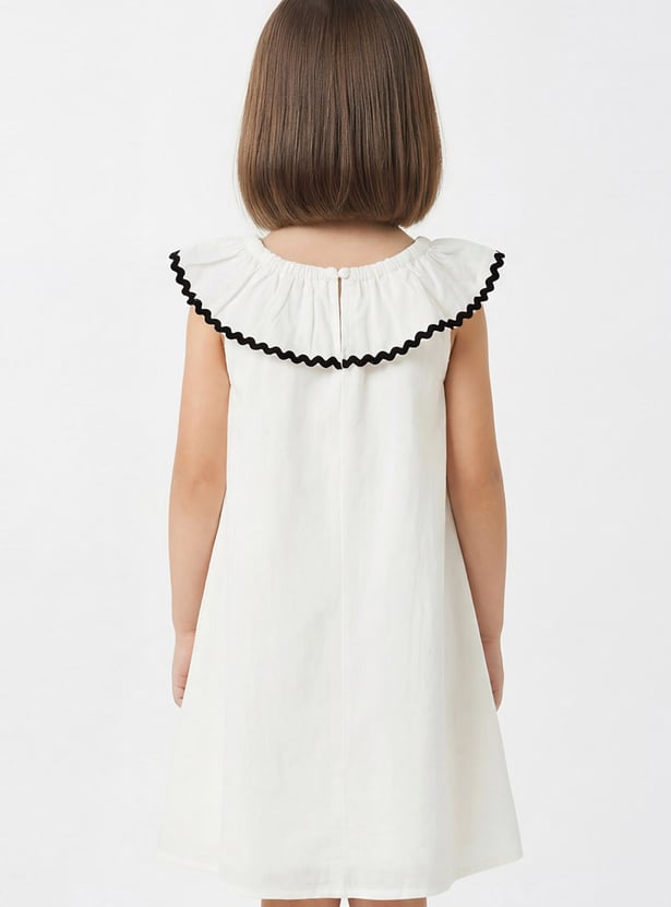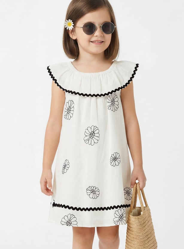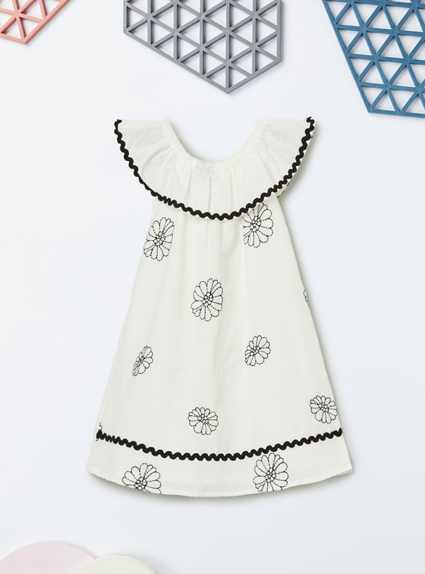 Add graceful charm to your wardrobe with this embroidered A-line dress, designed with a classic round neck and delicate cap sleeves. The flattering A-line silhouette offers easy movement, while the intricate embroidery enhances its feminine appeal.