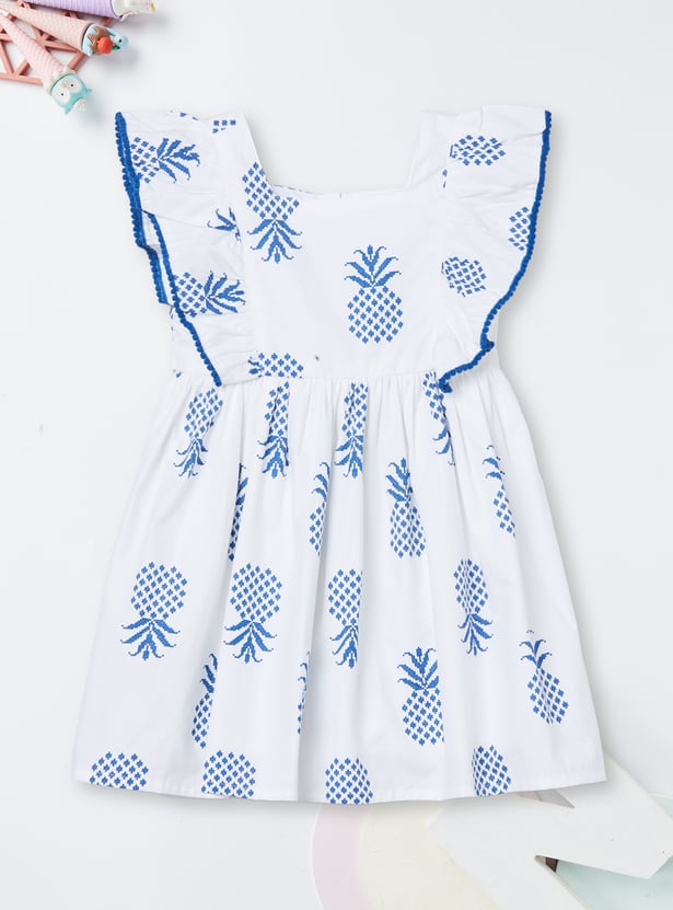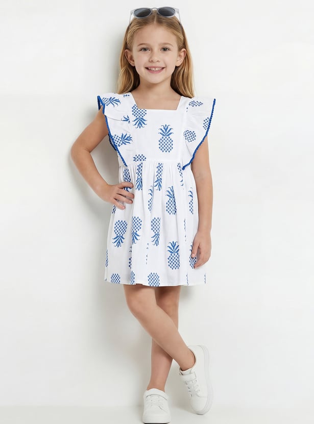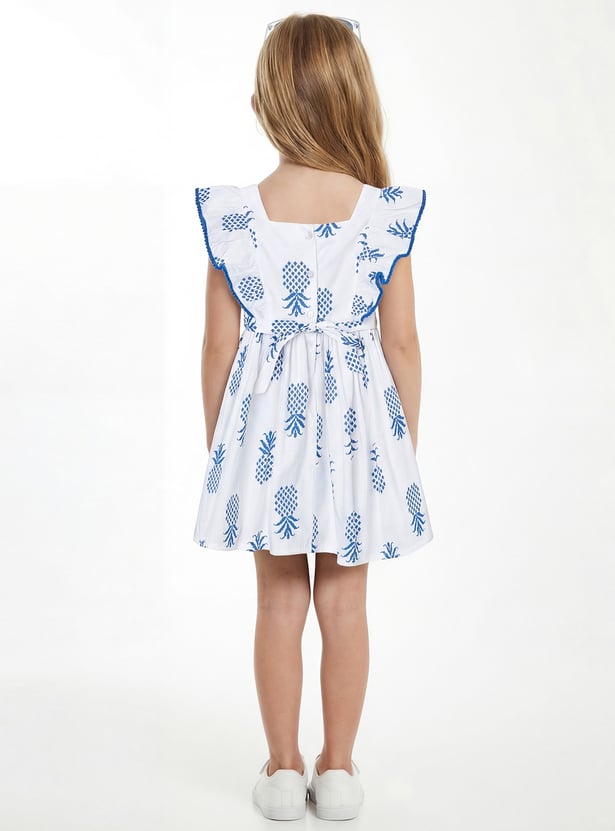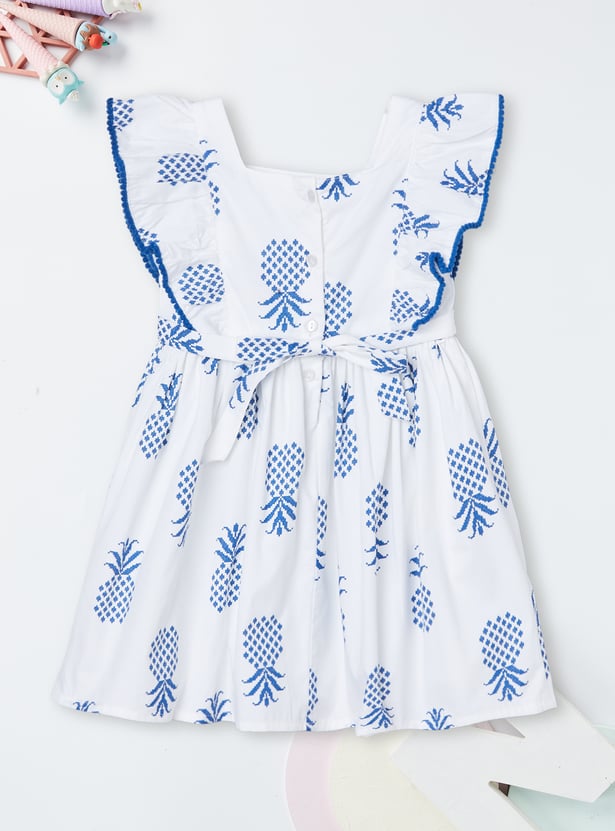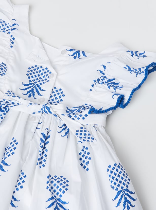 Bring charm and elegance to her wardrobe with this embroidered dress. Featuring a square neck, button closure, back belt, and half sleeves for comfort, it’s beautifully finished with ruffles that add a sweet, playful touch.