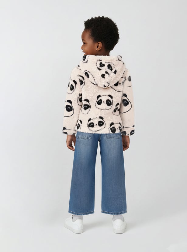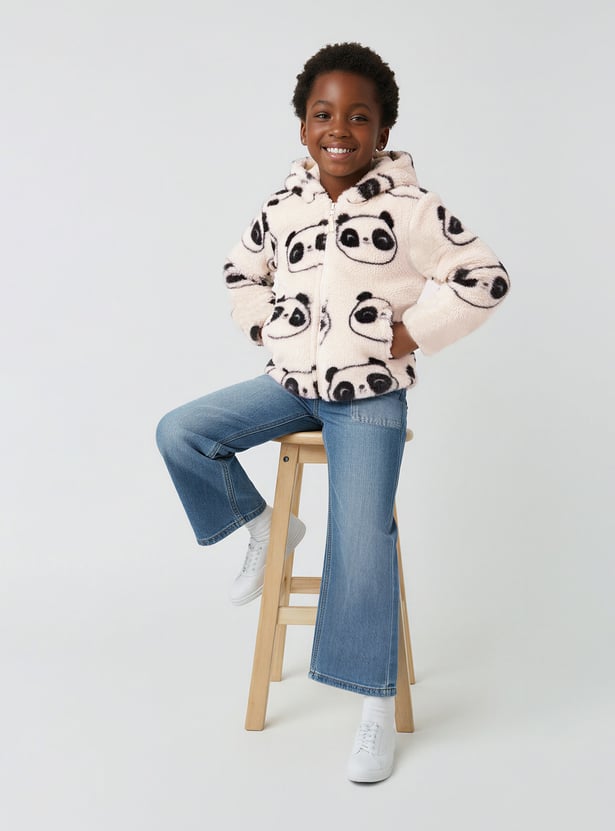 Girls Faux Fur Printed Hooded Jacket