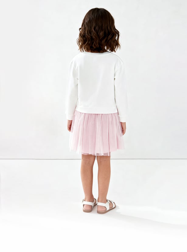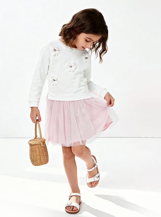 Girls Floral Applique Tulle Dress