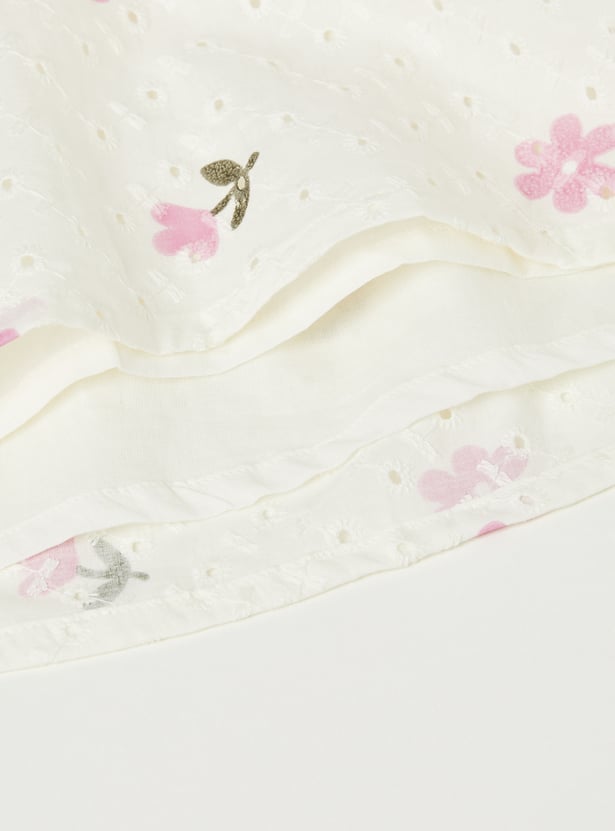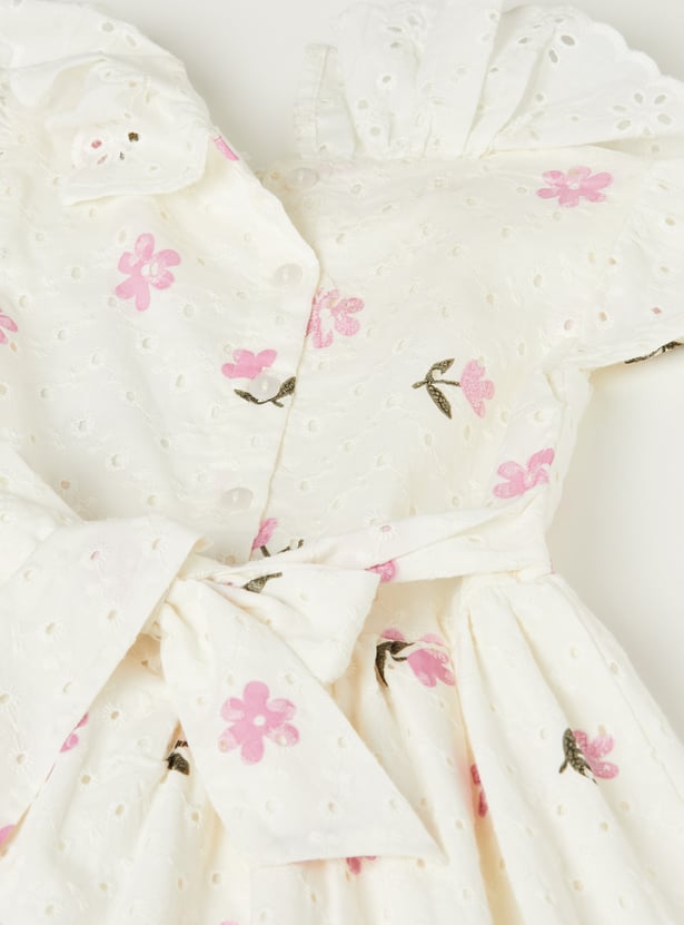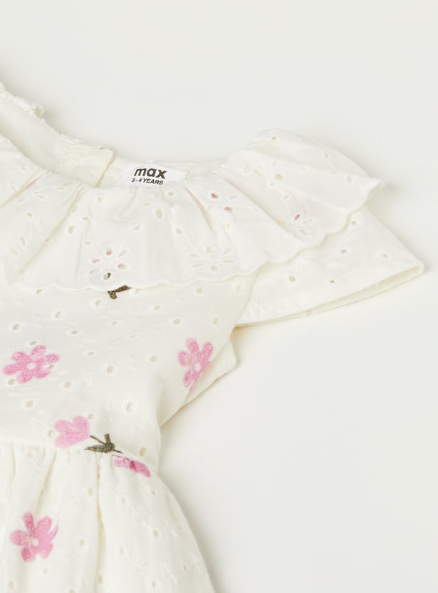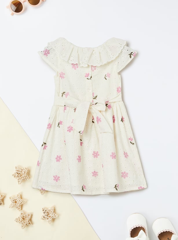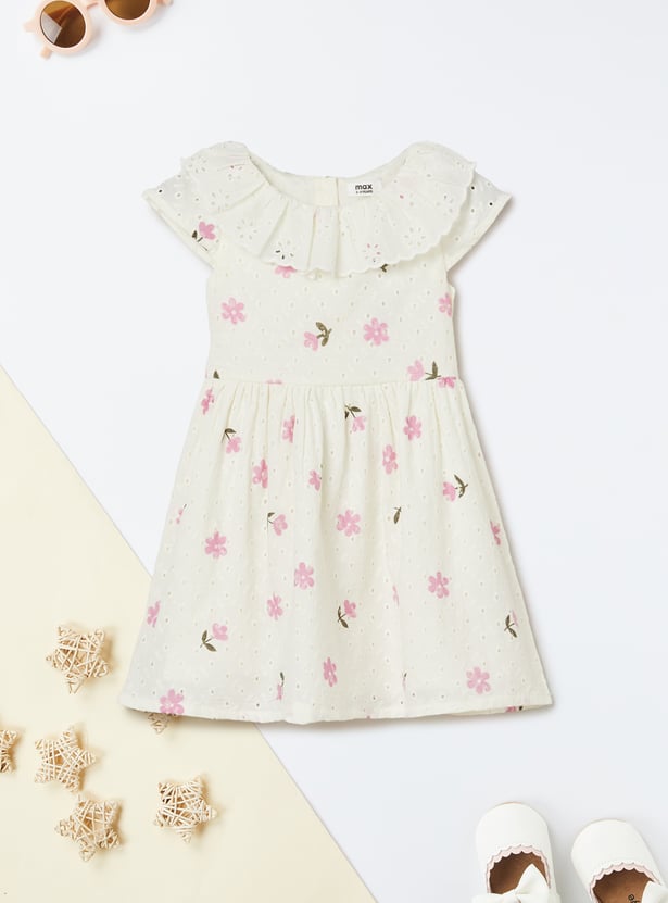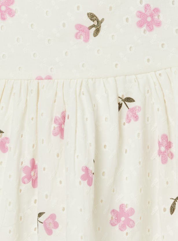 Bring elegance to your wardrobe with this floral embroidered dress, designed for timeless charm and comfort. Featuring a round neck and half sleeves, it’s detailed with delicate floral embroidery and schiffli details that add a feminine touch.