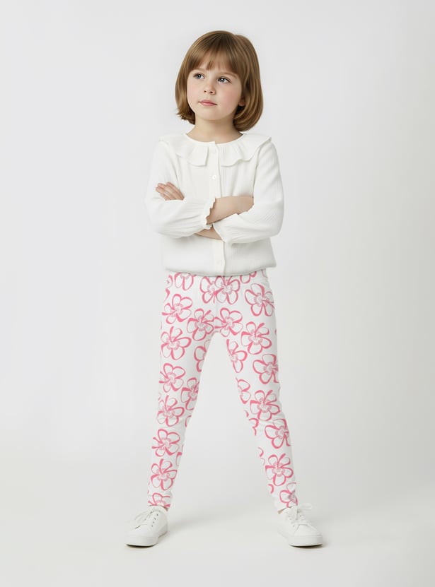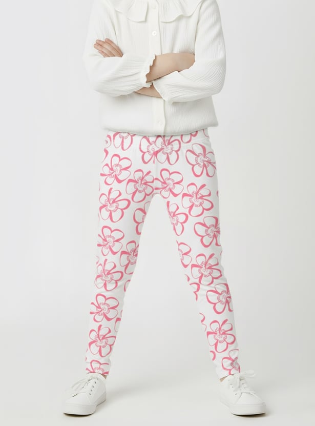 Add a pop of color to your look with these floral print leggings, designed for all-day comfort. The elasticated waist ensures a snug and flexible fit.