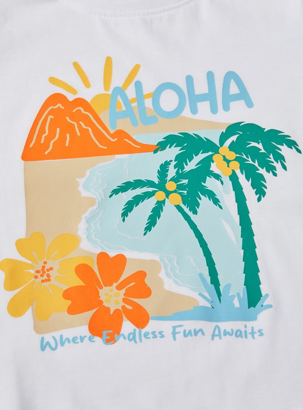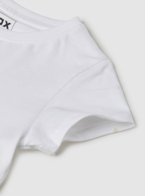 Let your little one shine in this graphic print T-shirt! Designed with a classic round neck and half sleeves, this T-shirt offers a comfortable and stylish fit. The vibrant graphic print adds a playful touch, making it perfect for casual outings.