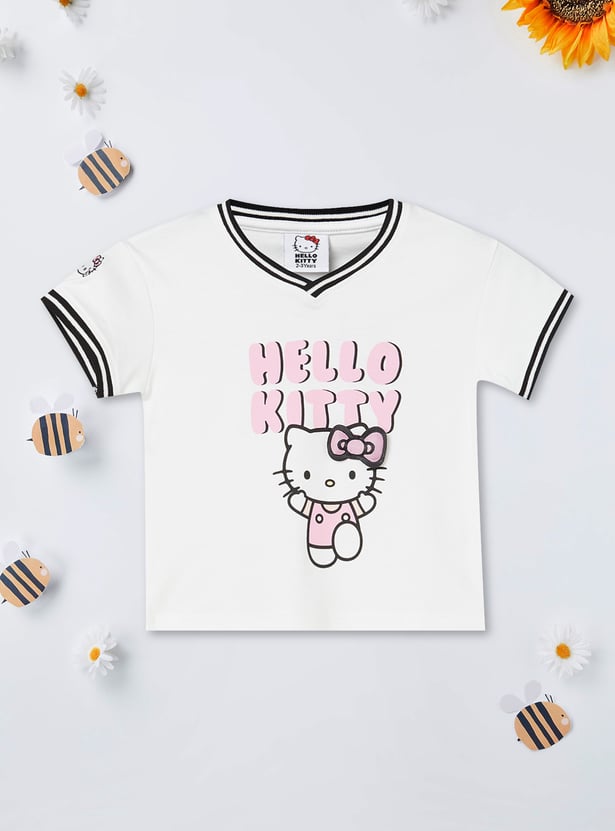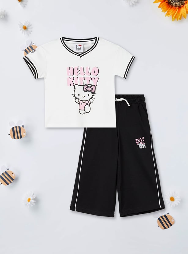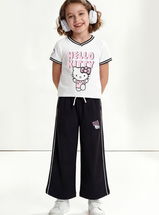 Girls Hello Kitty Print T-shirt and Track Pants Set