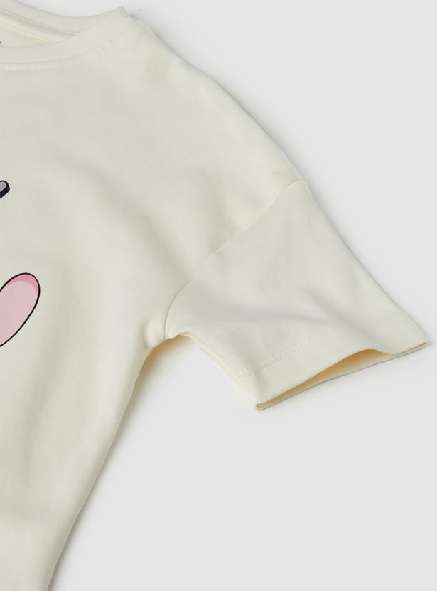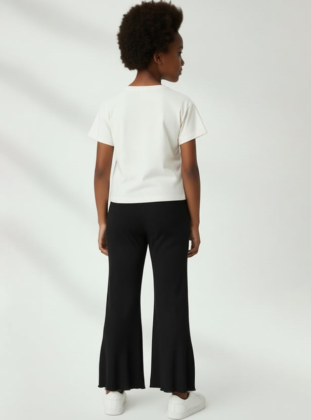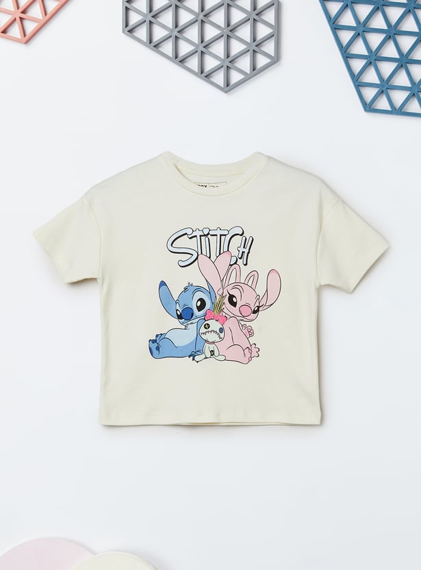 Bring playful charm to your casual wardrobe with this Lilo & Stitch trousers set. The T-shirt features a round neck and half sleeves, paired with flared trousers designed with an elasticated waist for a comfortable fit.