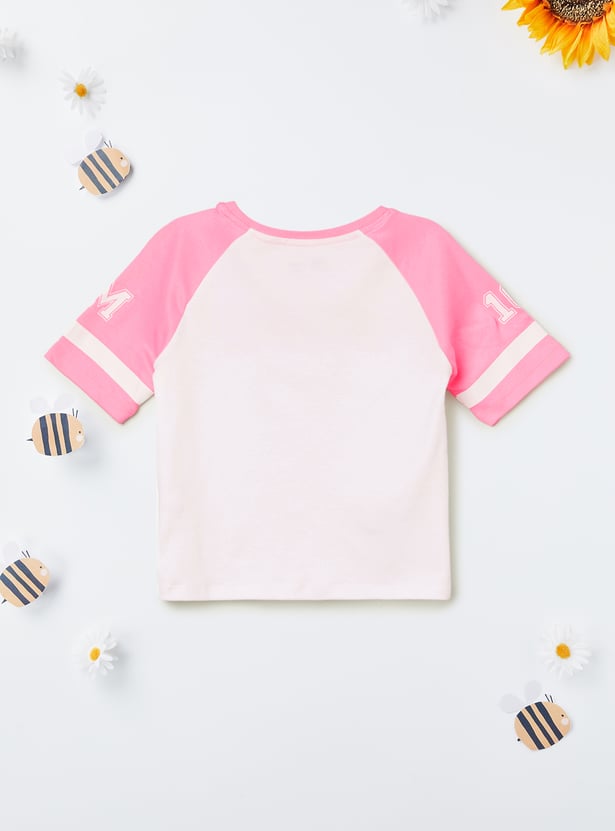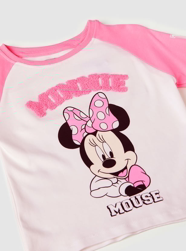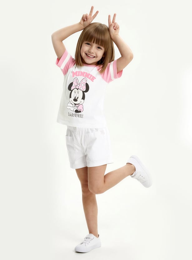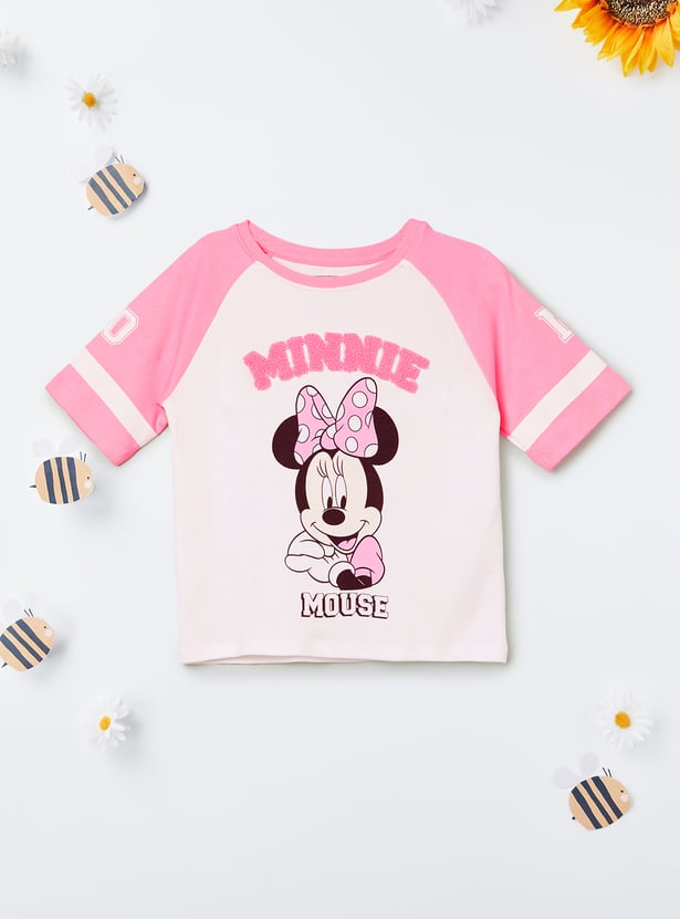 Playful and charming, this Minnie Mouse print T-shirt features a round neck and half sleeves for everyday comfort. The fun character design adds a touch of nostalgia and personality to the classic silhouette.