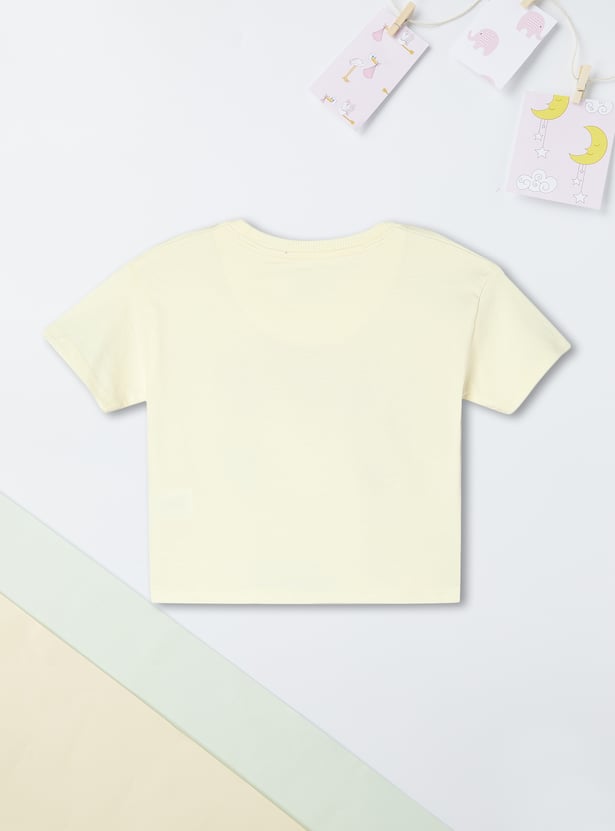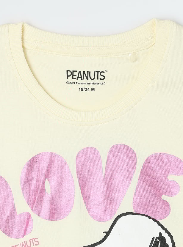This playful T-shirt is sure to spark a smile on your little one. Featuring a classic round neck, an adorable Peanuts Snoopy print, and half sleeves, it's perfect for adding a touch of fun to their everyday wardrobe.