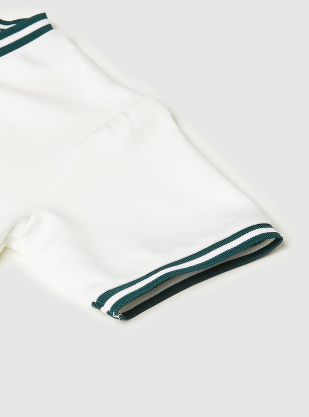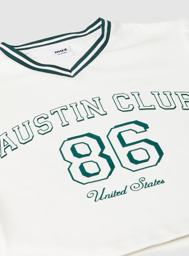 This printed T-shirt features a flattering V-neck and half sleeves, combining everyday comfort with effortless style.
