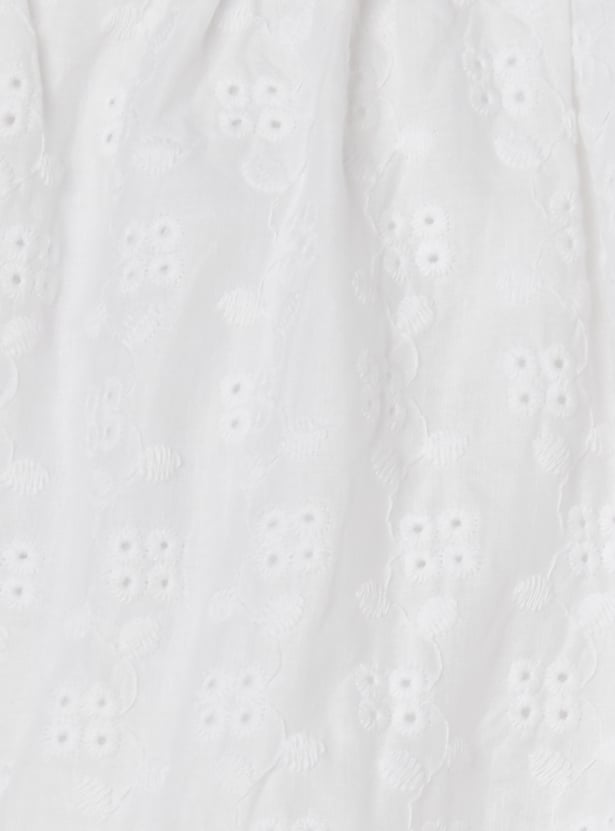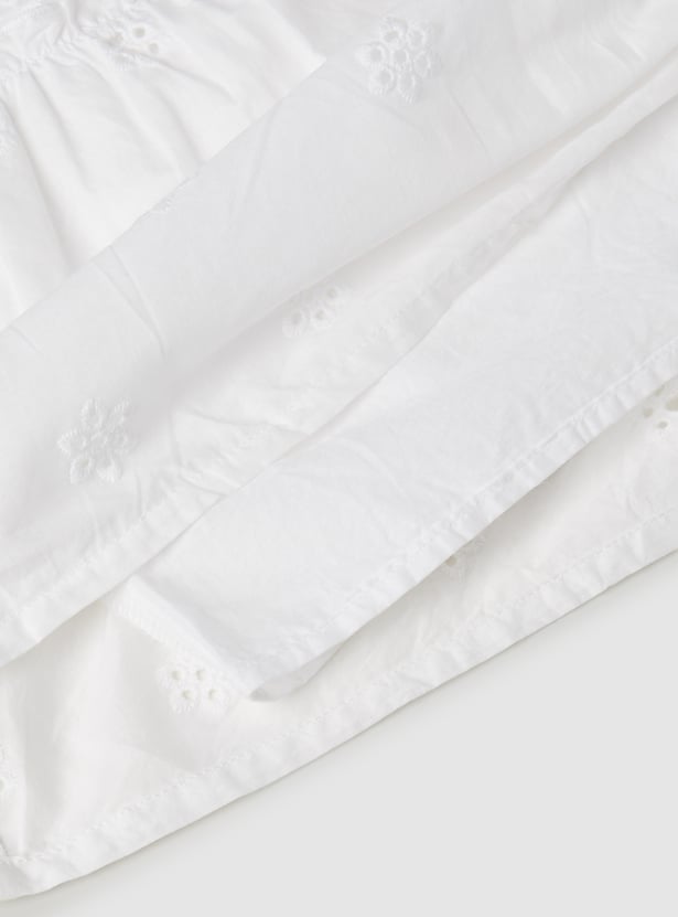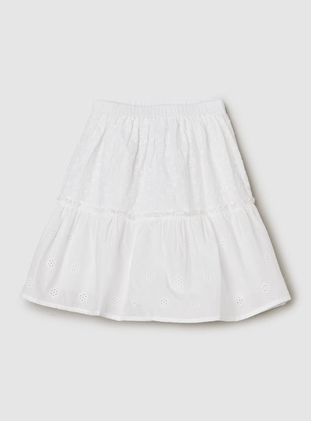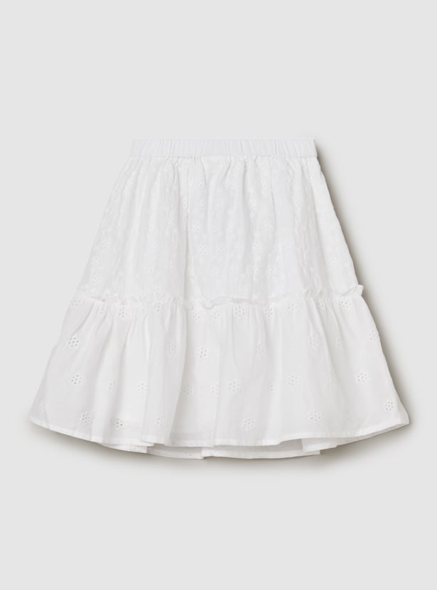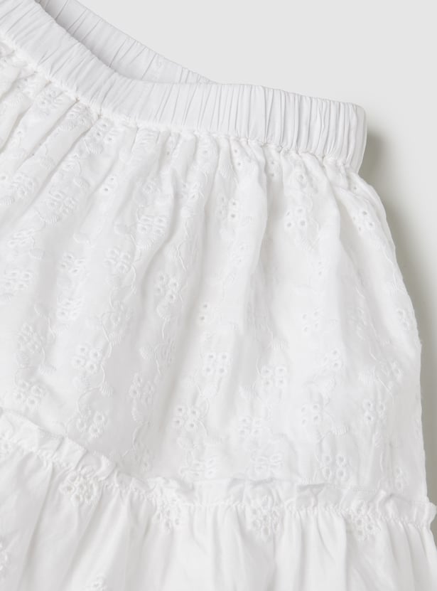 Add a feminine flair to your look with this Schiffli flounce hem skirt, featuring delicate embroidery and an elasticated waist for all-day comfort. The flouncy hem adds movement and charm, perfect for breezy, warm-weather days.