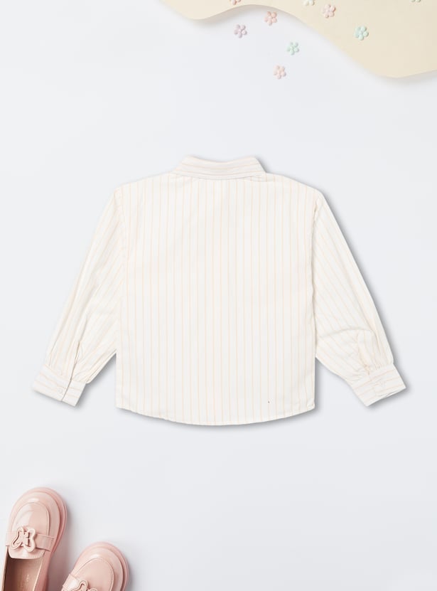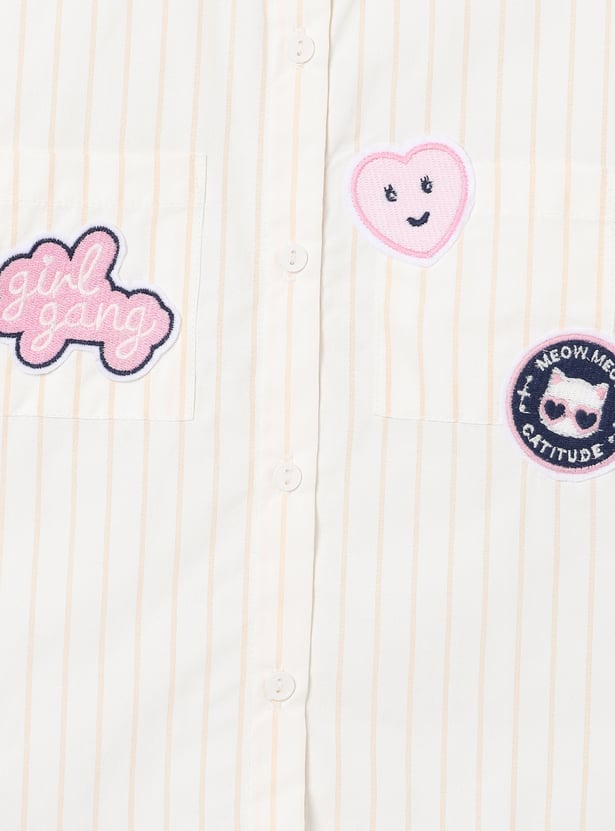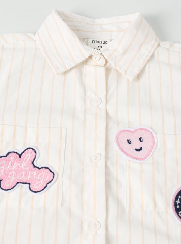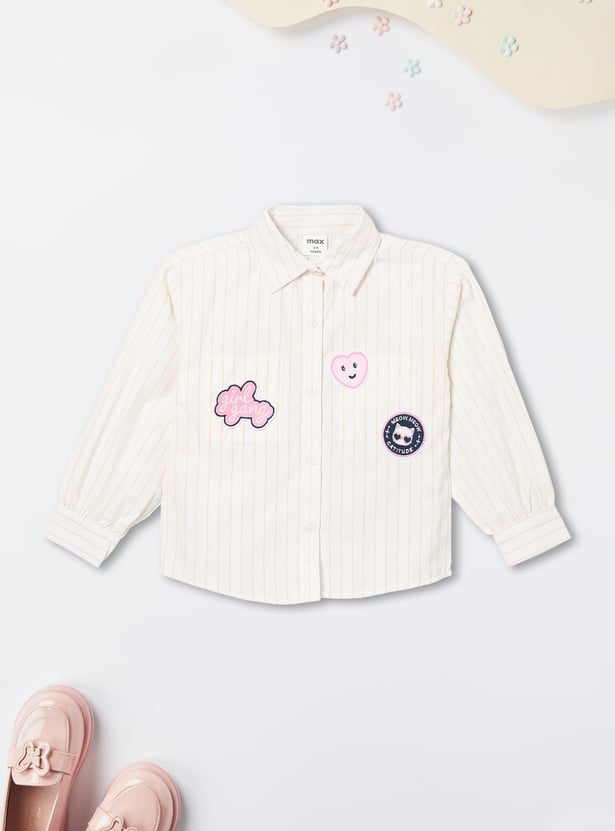 This striped top features a collared neckline, full-sleeve design with a button placket, and cute badge details. The regular fit is perfect for a polished yet playful everyday look.