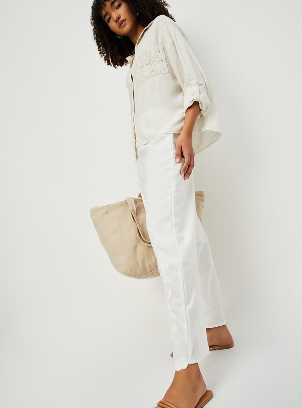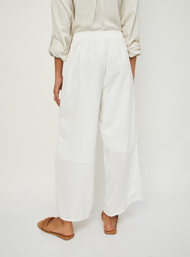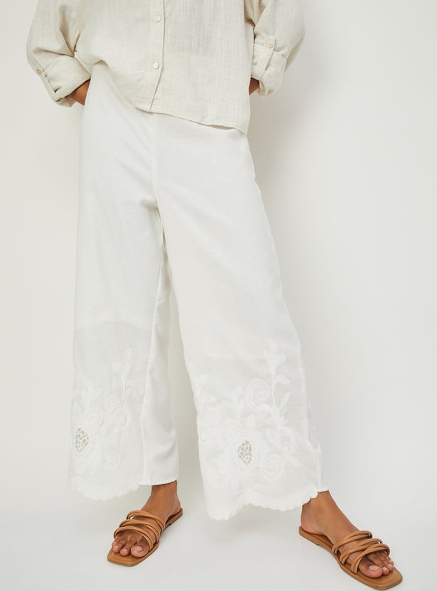 These embroidered palazzos offer a perfect blend of comfort and elegance, featuring an elasticated waist for a relaxed fit and beautifully detailed embroidery along the hem.