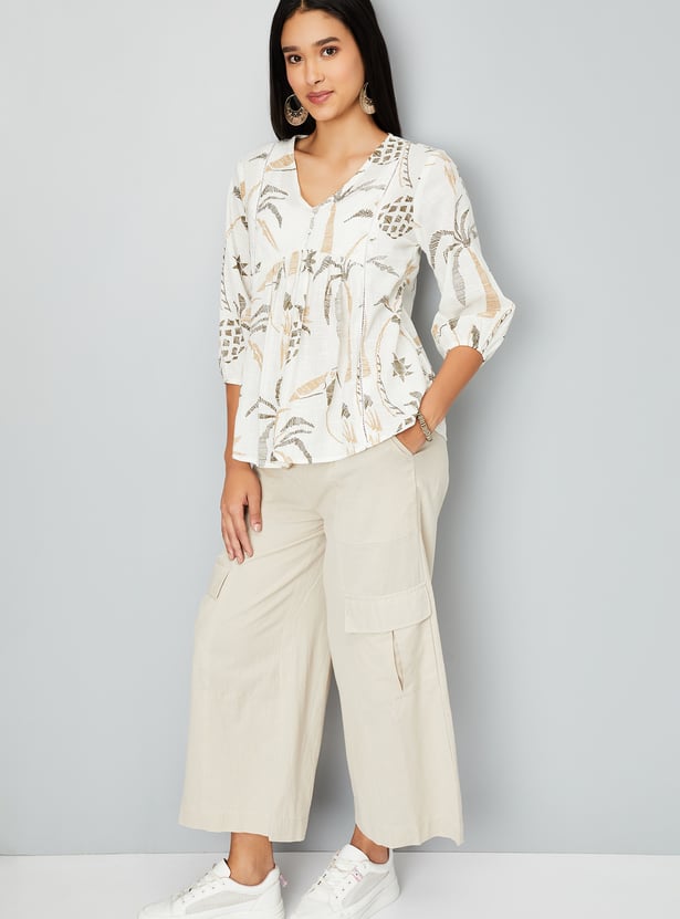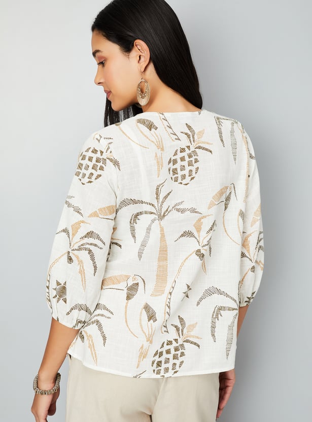 This printed tunic features a flattering V-neck, 3/4th puff sleeves, and a flared silhouette that adds movement and style. The bold print enhances the design, making it perfect for a fun and casual look.