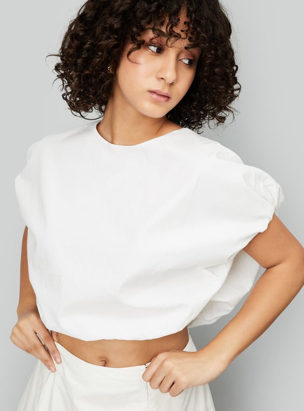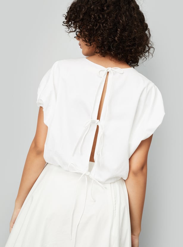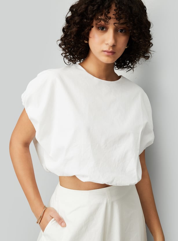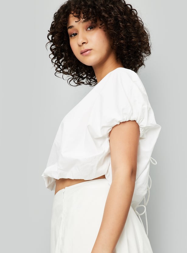 Kalki x Max Women Tie-Up Balloon Hem Crop Top