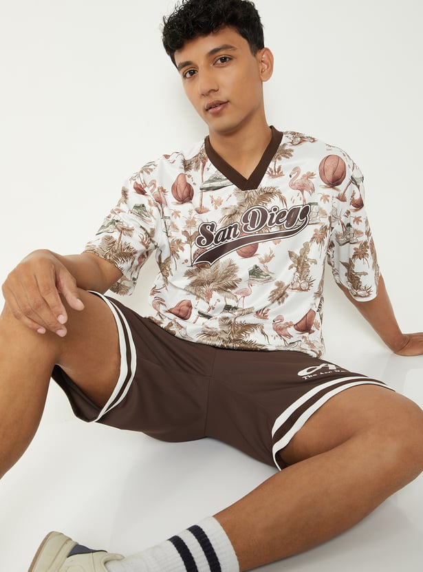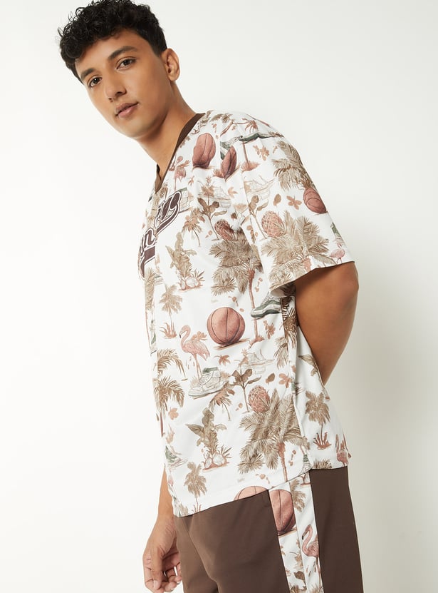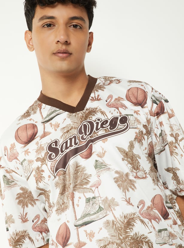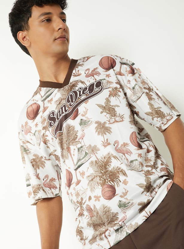 This T-shirt features a printed design, perfect for sports or casual outings. The V-neckline adds a modern touch, while the half sleeves ensure comfort and ease of movement.