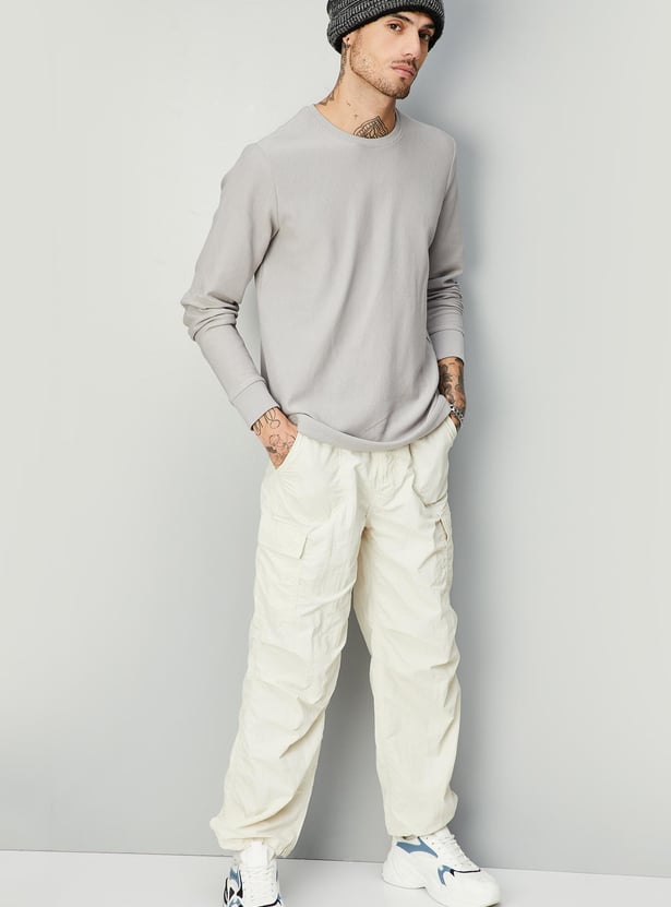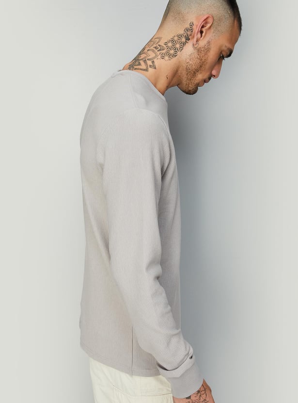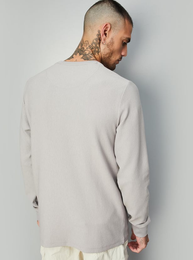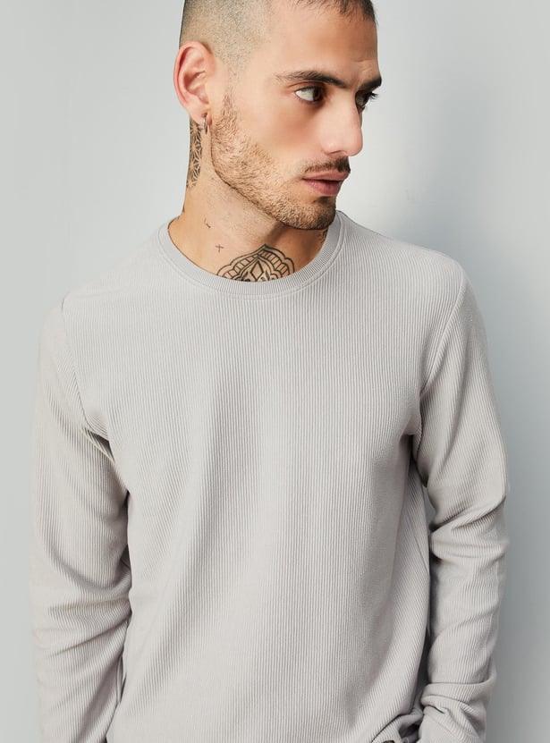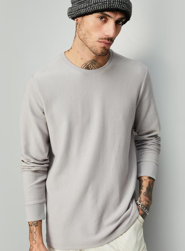 Looking to add some versatility to your wardrobe? Check out this casual ribbed T-shirt! It features a classic crew neckline and long sleeves, making it a perfect addition to any outfit. Pair it with jeans and sneakers to complete your look with a touch of casual cool.