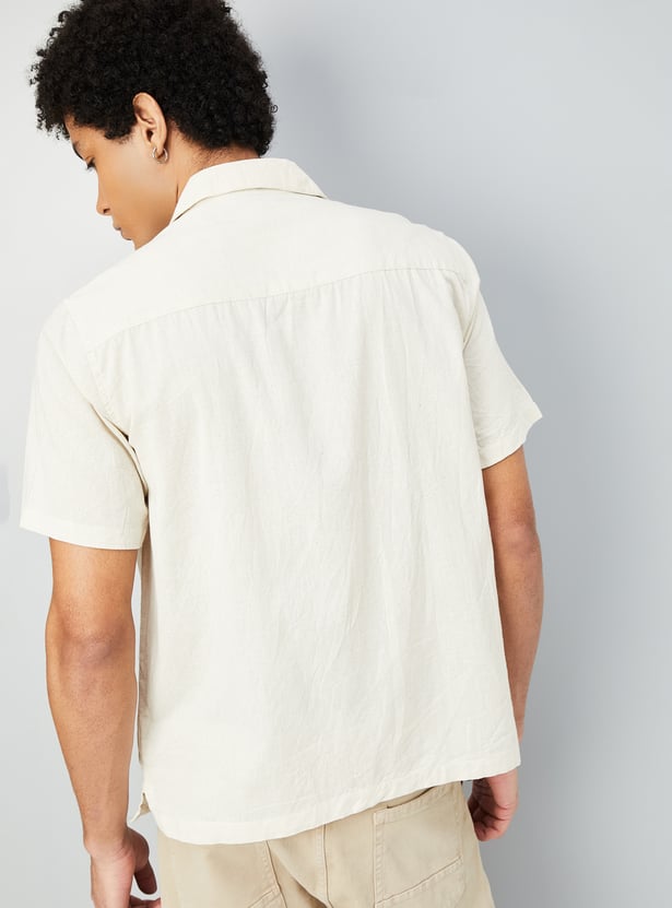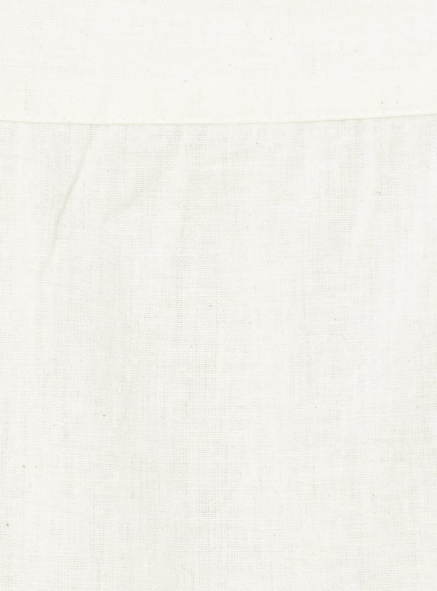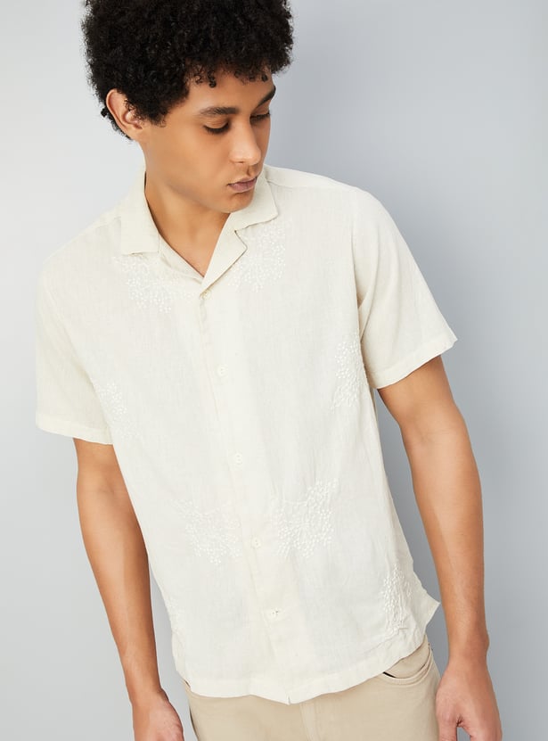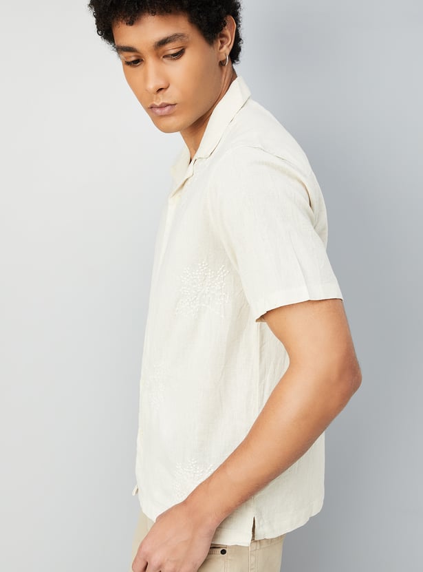 Elevate your ethnic wardrobe with this slim-fit embroidered short kurta, featuring a resort collar and half sleeves for a modern yet traditional touch. The button placket adds a refined detail, making it perfect for festive occasions or casual outings.