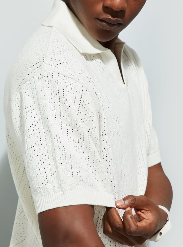 URB_N Men Oversized Pointelle Knit Polo T-shirt