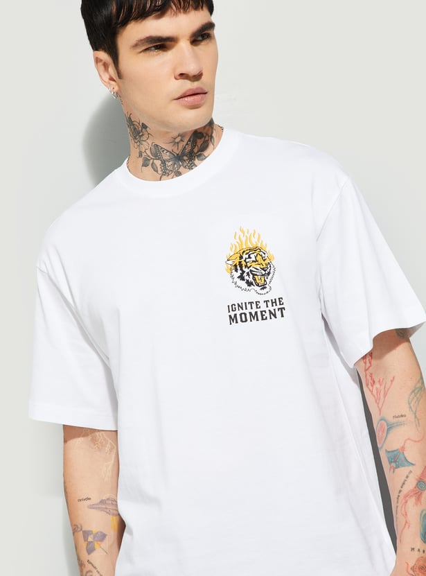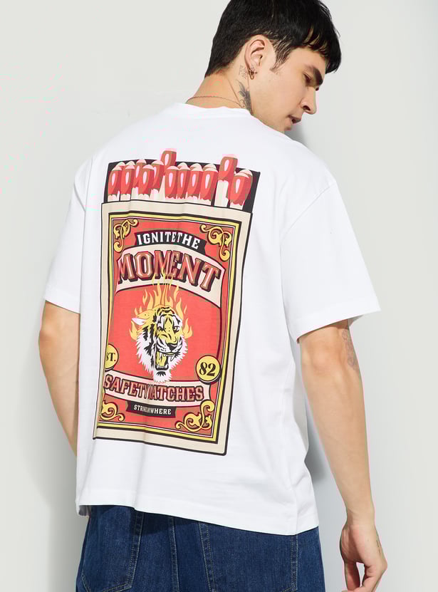 Step into effortless style with this printed oversized fit T-shirt. Featuring a classic crew neck and half sleeves, it delivers a relaxed silhouette with a bold back print that adds personality.