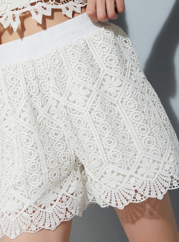 URB_N Women Crochet Knit Shorts
