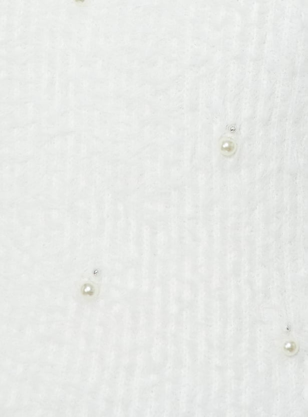 Add a touch of sparkle to your winter wardrobe with this embellished sweater, featuring a round neck and full sleeves. Soft, cosy, and stylish, it brings a hint of elegance to your everyday look.