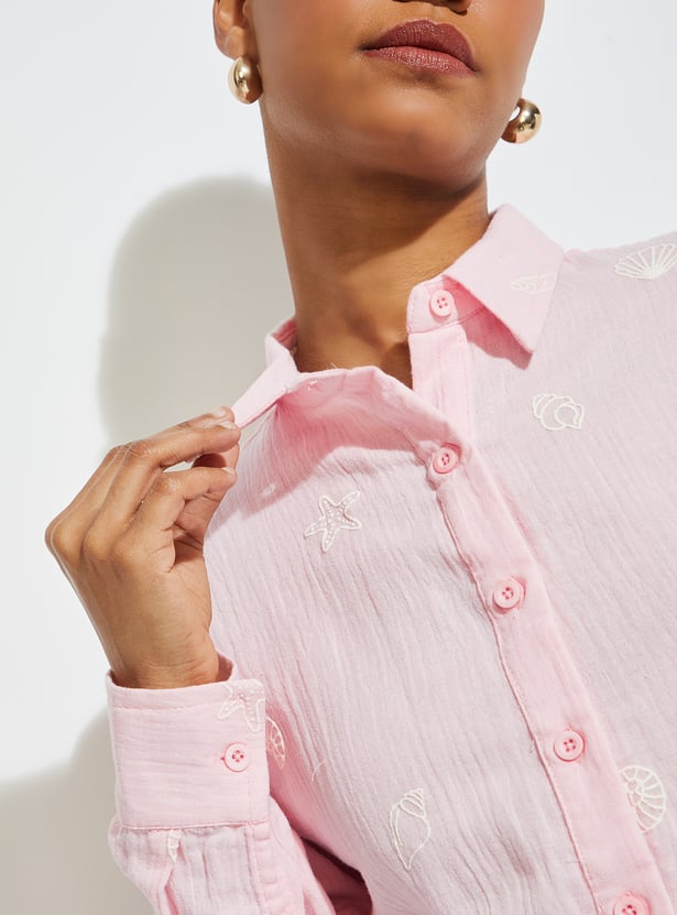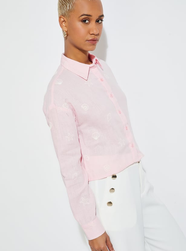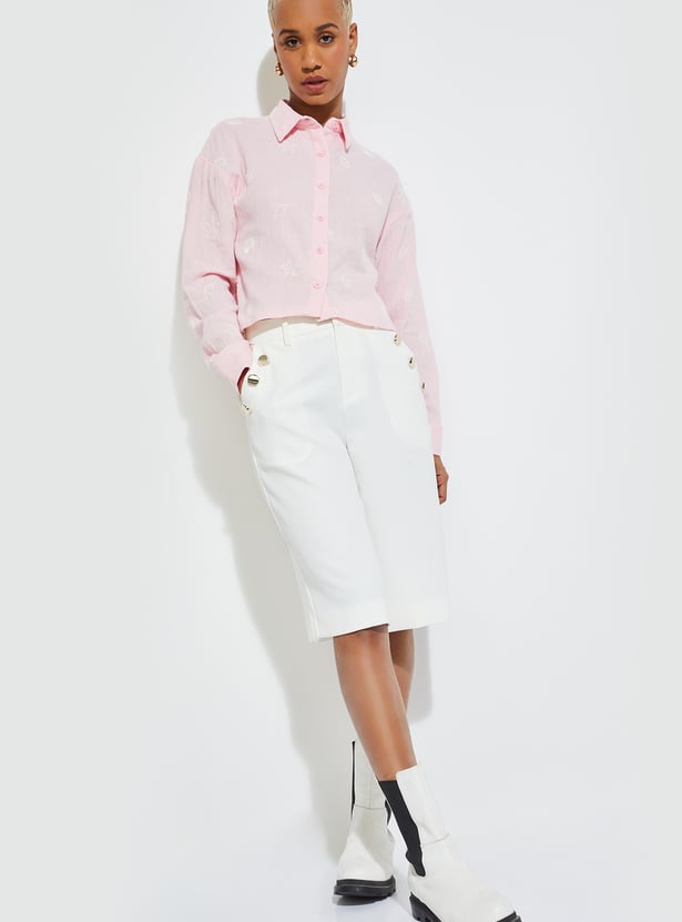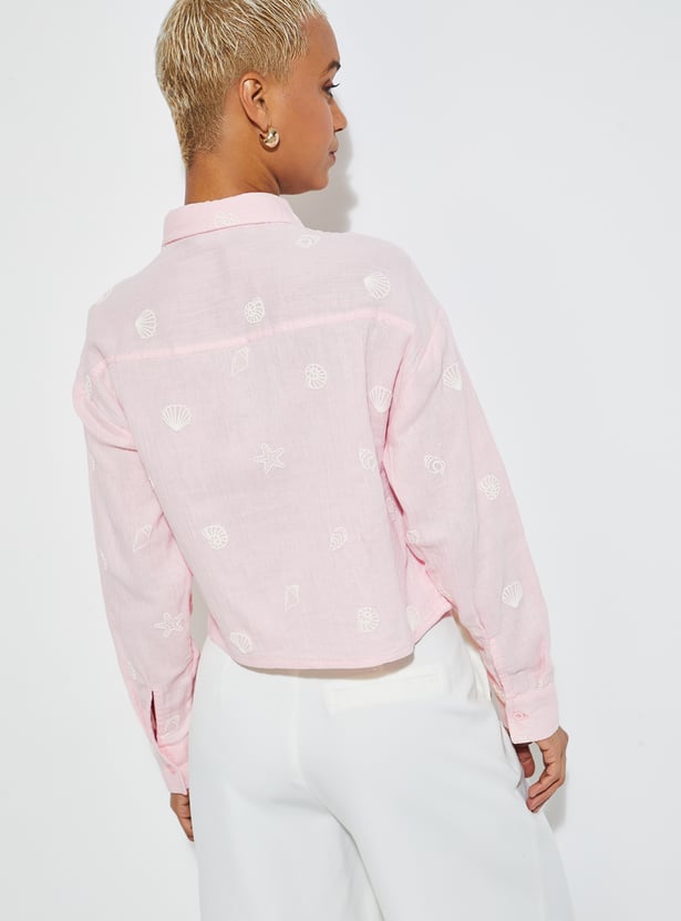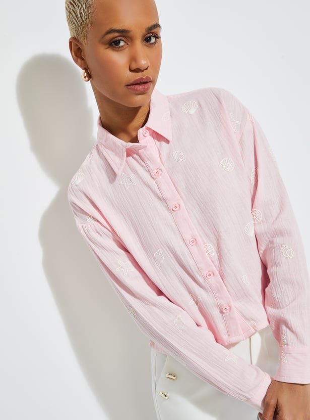 Elevate your casual edit with this printed shirt, featuring a spread collar, full sleeves with cuffs, and a button placket. The short silhouette adds a modern edge.
