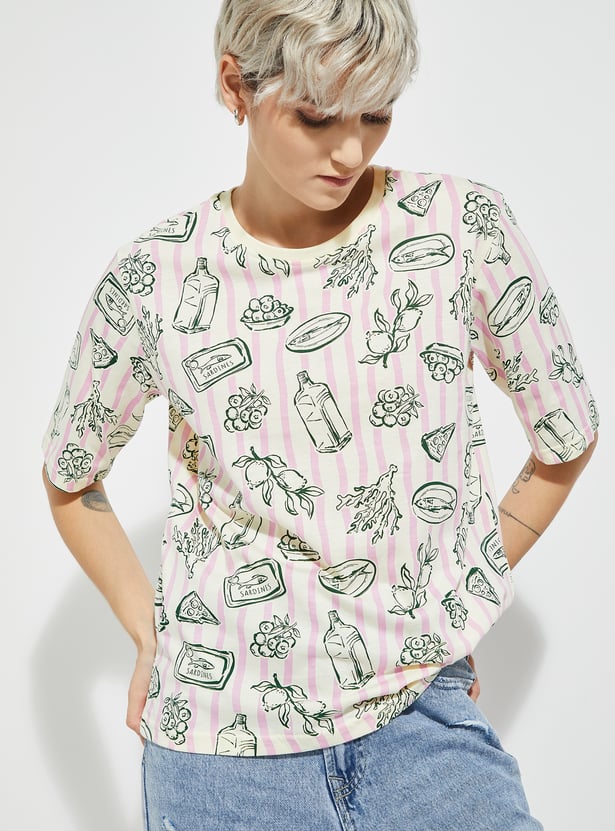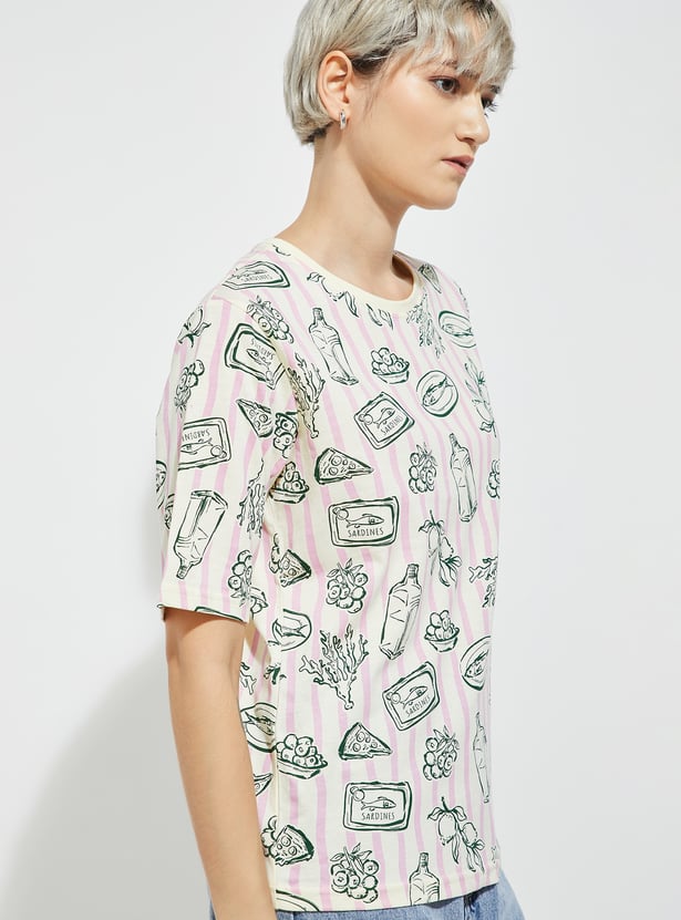 Update your casual essentials with this printed T-shirt featuring a classic round neck and comfortable half sleeves. Designed for an easy, everyday fit perfect for versatile styling.