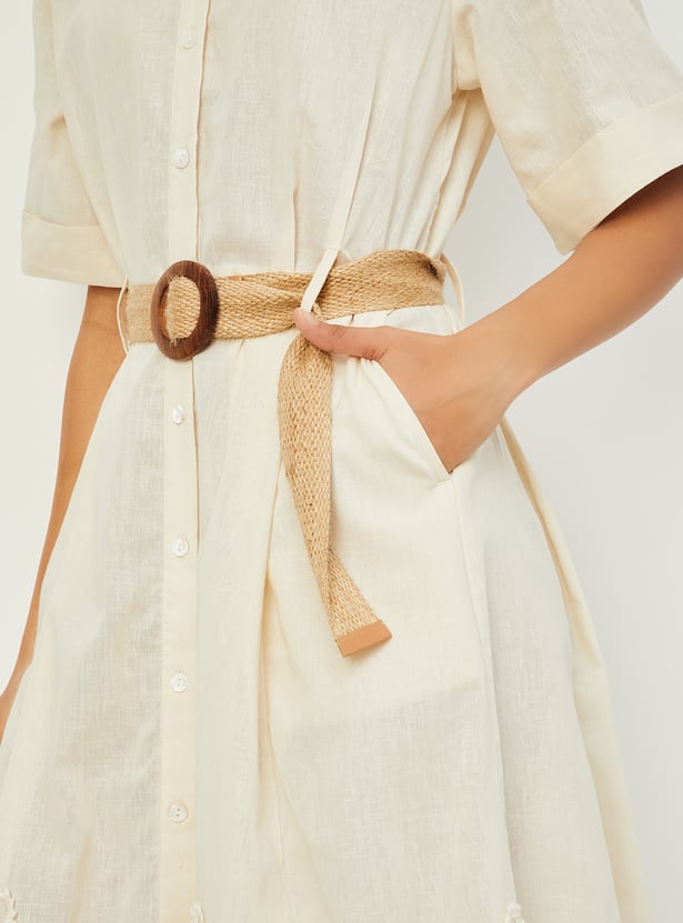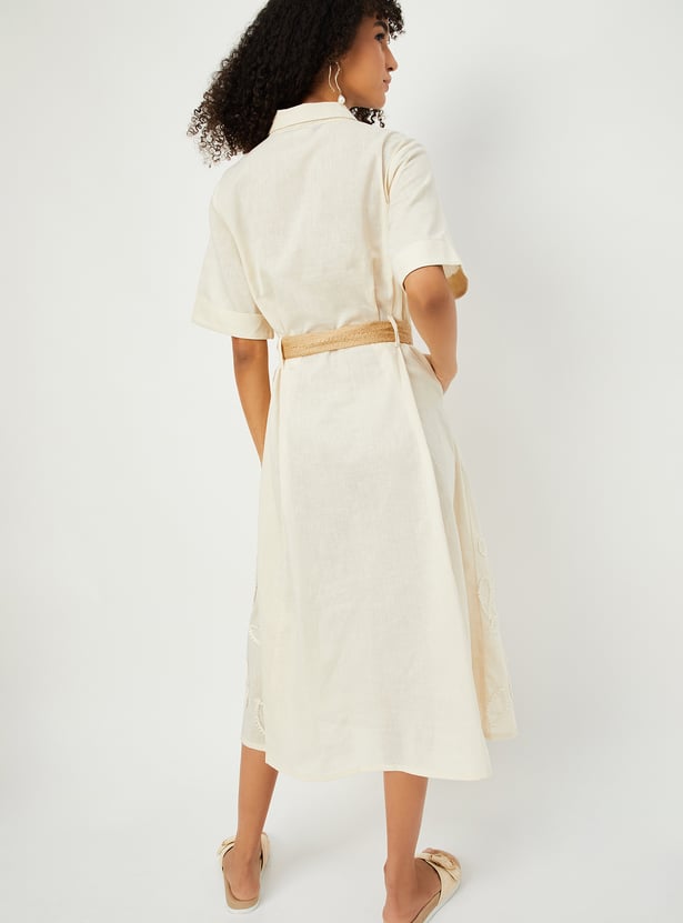 Women Embroidered Belted Shirt Dress