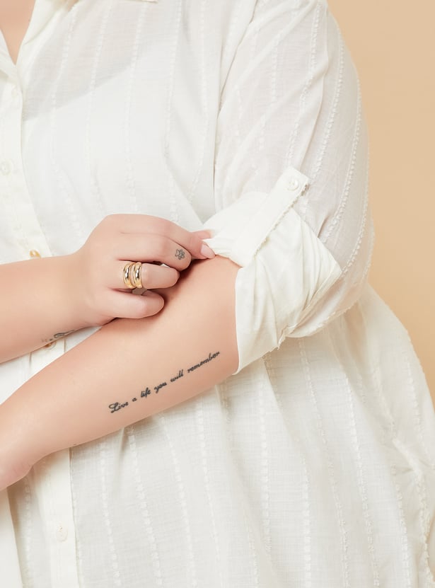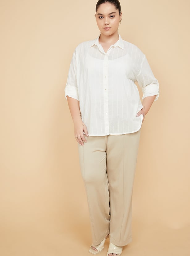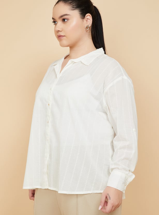 Make a subtle statement with this embroidered oversized shirt, featuring a spread collar, button placket, and full sleeves with buttoned cuffs. The delicate embroidery adds a touch of elegance to its relaxed silhouette, perfect for easy, everyday styling. Model Size :