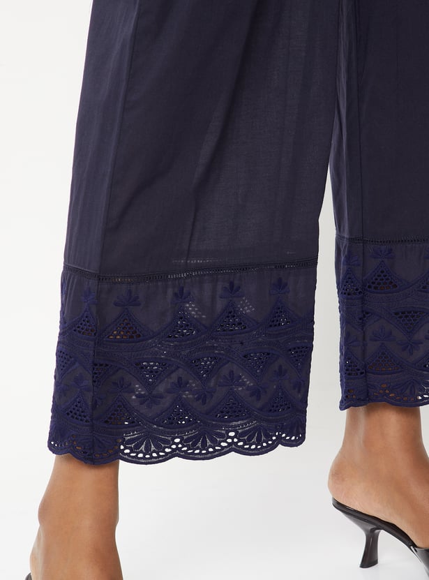 Women Embroidered Palazzos with Scalloped Hem