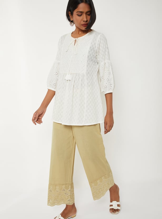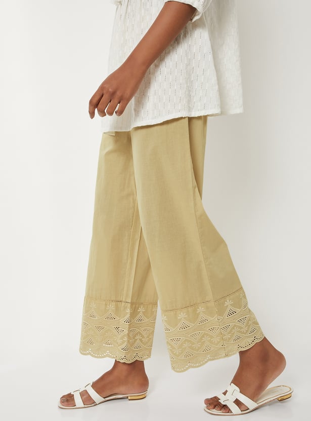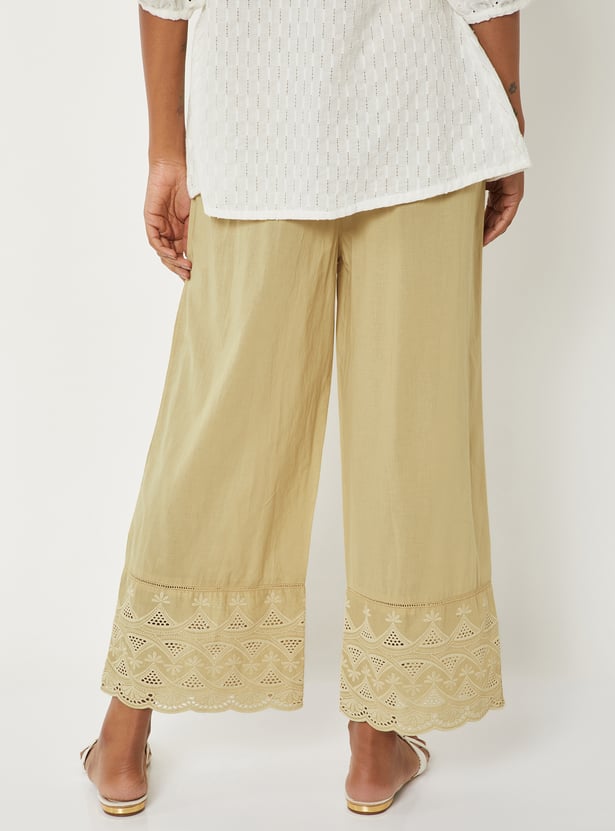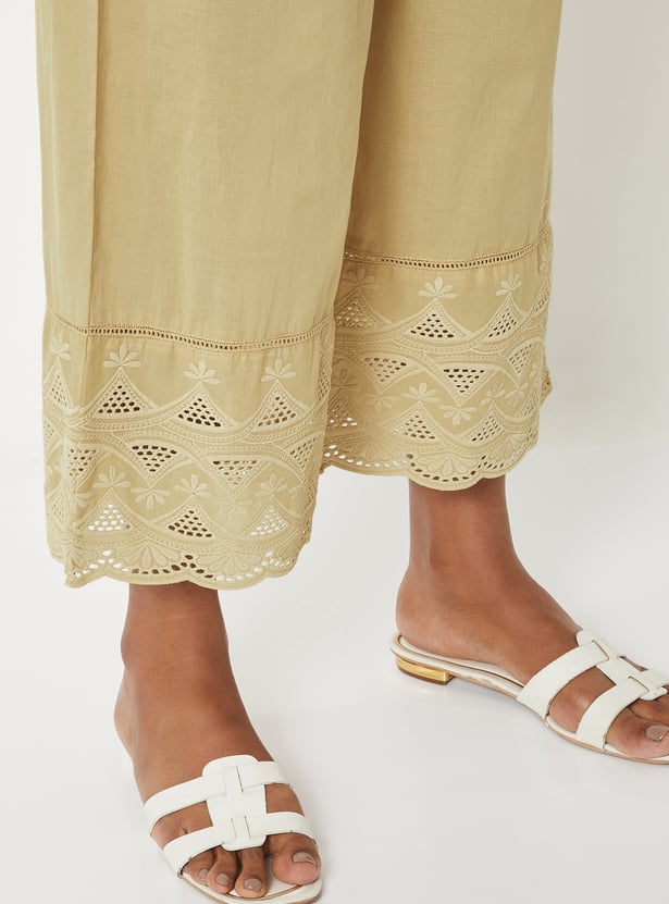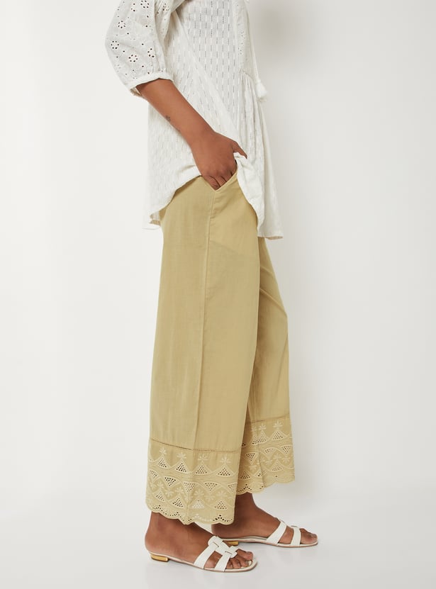 Women Embroidered Palazzos with Scalloped Hem