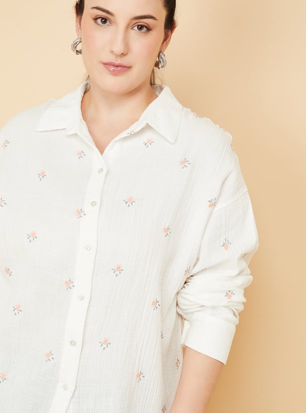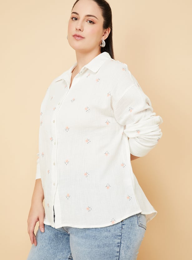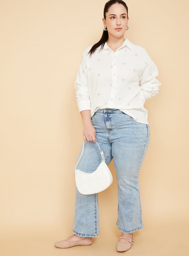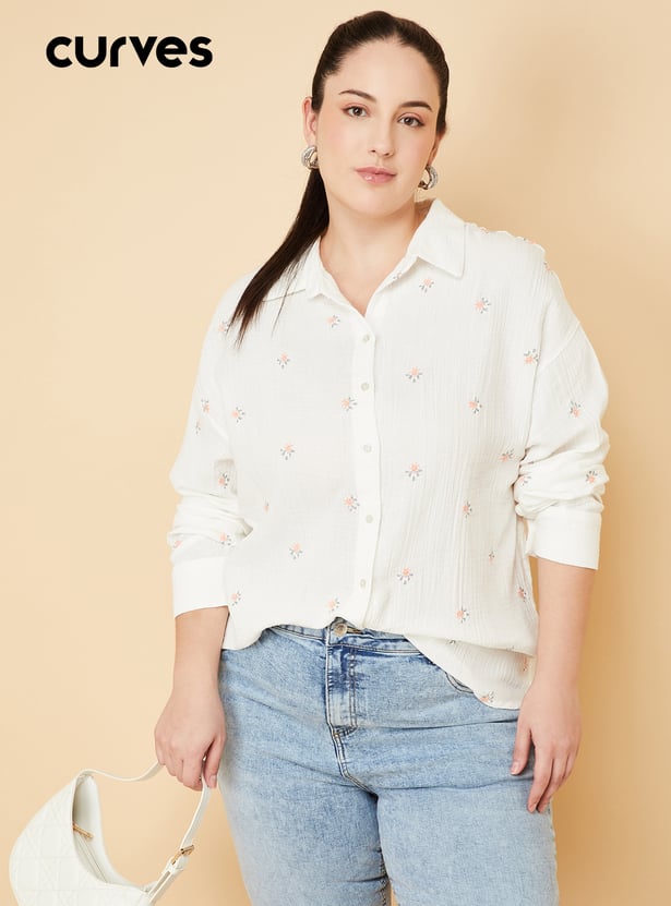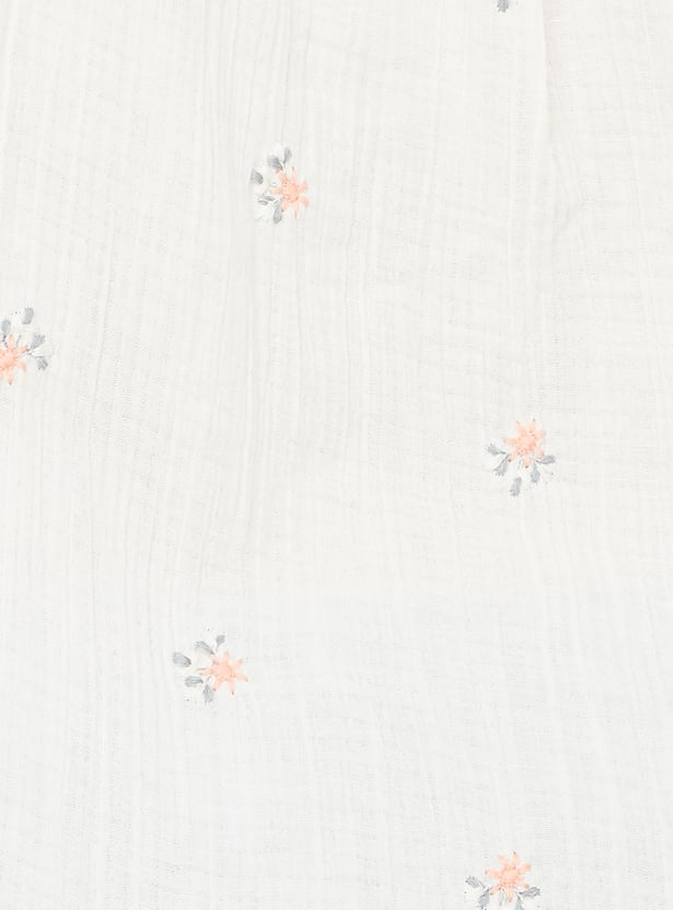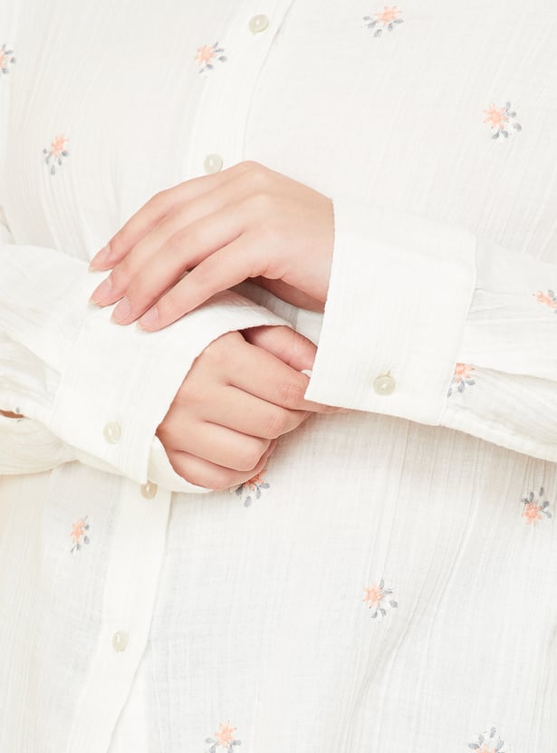 This embroidered top pairs a clean round neck with 3/4th puffed sleeves finished in soft elastic for a charming, elevated silhouette. Delicate embroidery adds texture and style, making it an easy standout for everyday polish or dressy moments. Model Size :