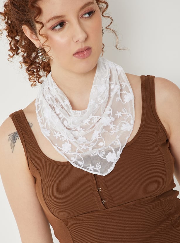 Women Embroidered Triangular Mesh Scarf