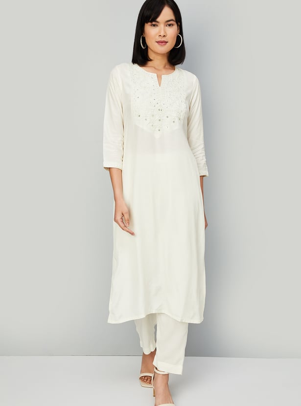 Women Embroidered Yoke Straight Kurta Set