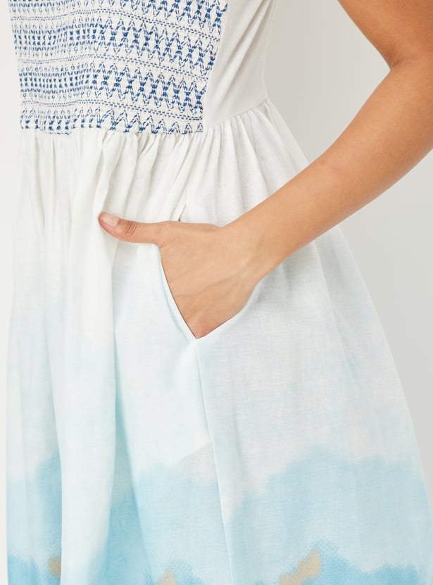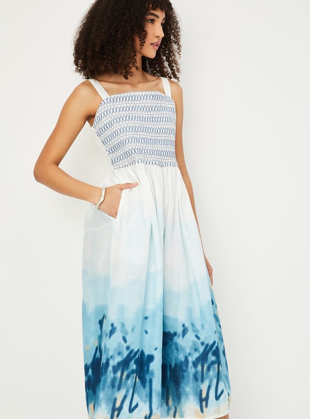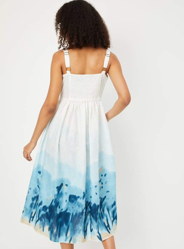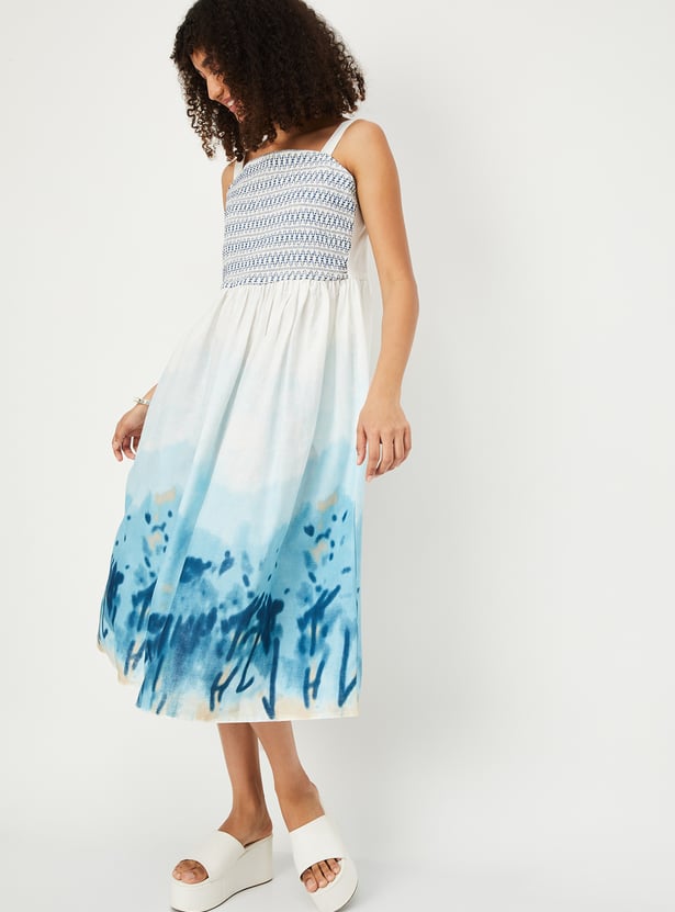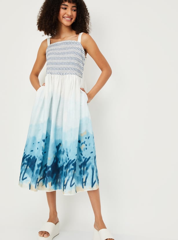 Effortlessly pretty, this floral print A-line dress features a knee-length, flattering square neckline, adjustable straps, and a smocked back for a flexible fit. Finished with side pockets, it’s as practical as it is charming.