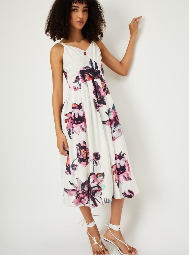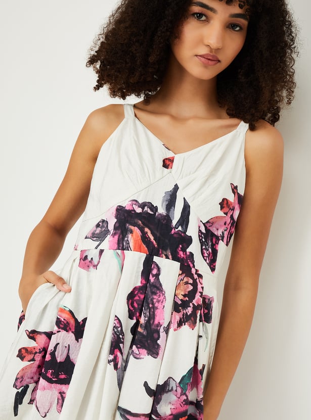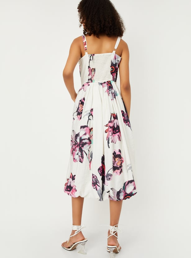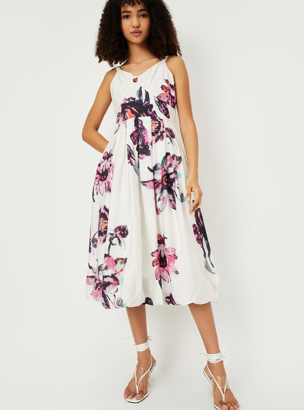 Embrace feminine charm with this floral print midi dress. Featuring a flattering V-neck, shoulder straps, smocked back, side pocket, and a graceful midi length, it’s perfect for warm days and casual outings.